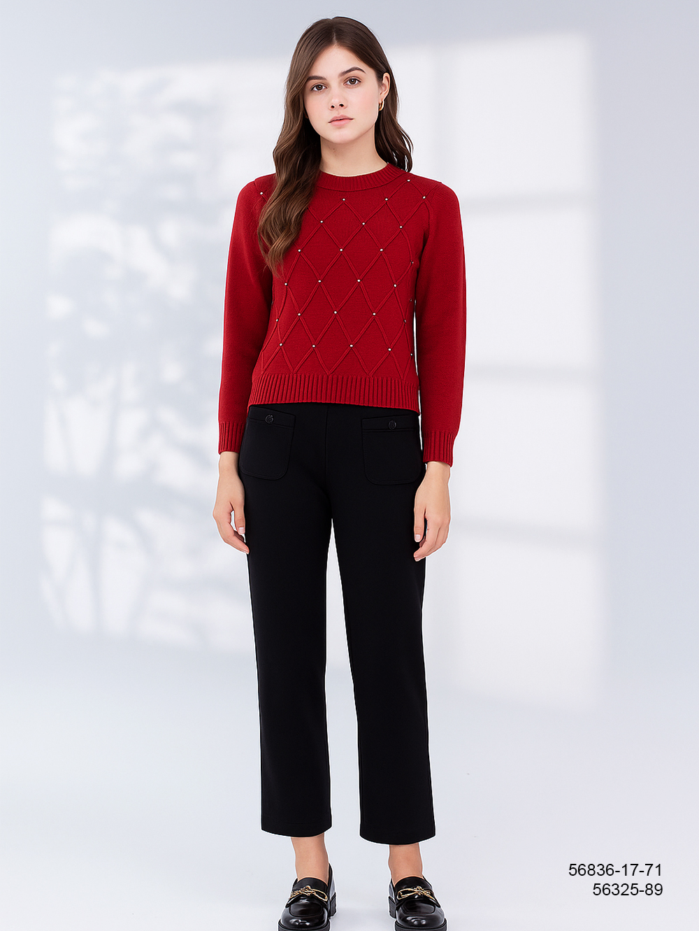 質感釘珠裝飾 細緻菱格麻花織紋 舒適柔軟素材