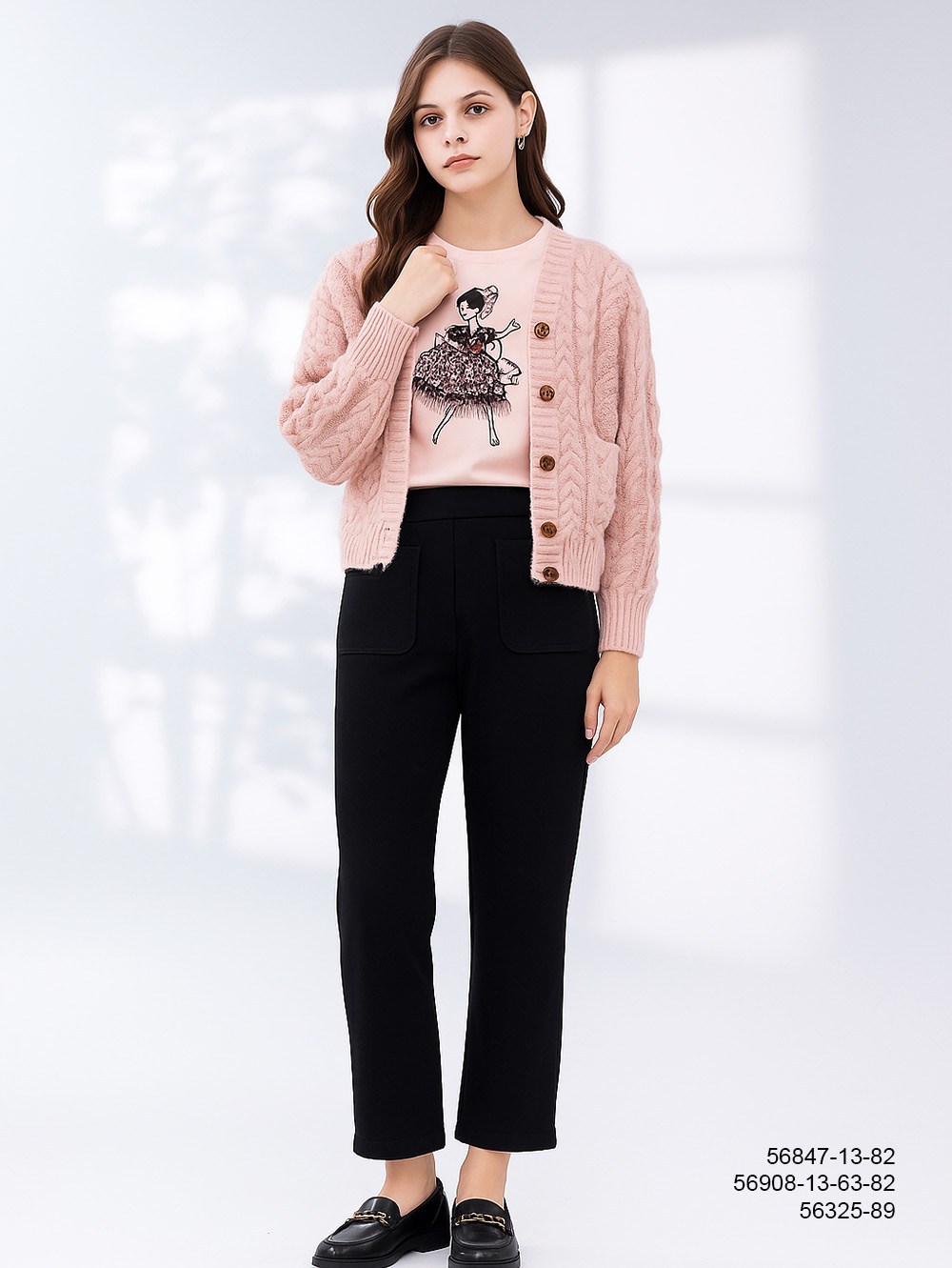 彈性磨毛針織面料 內貼鬆緊帶 舒適直筒版型