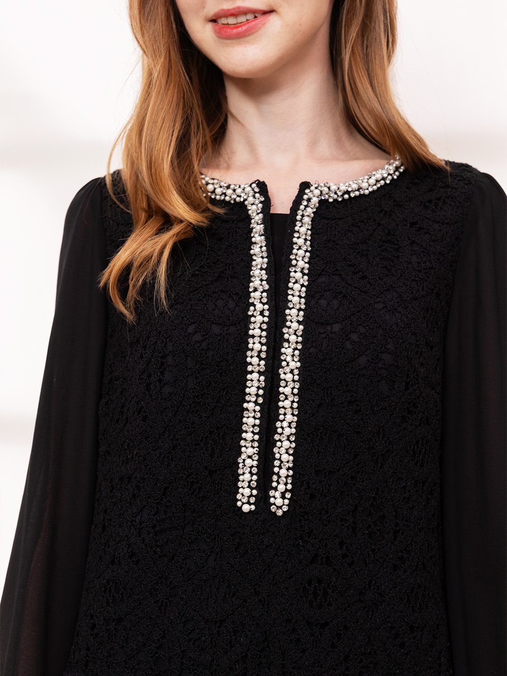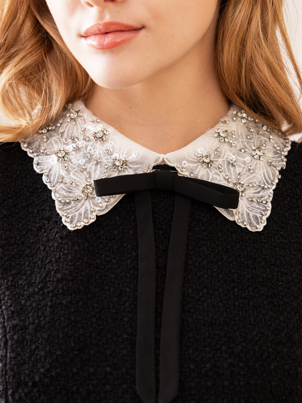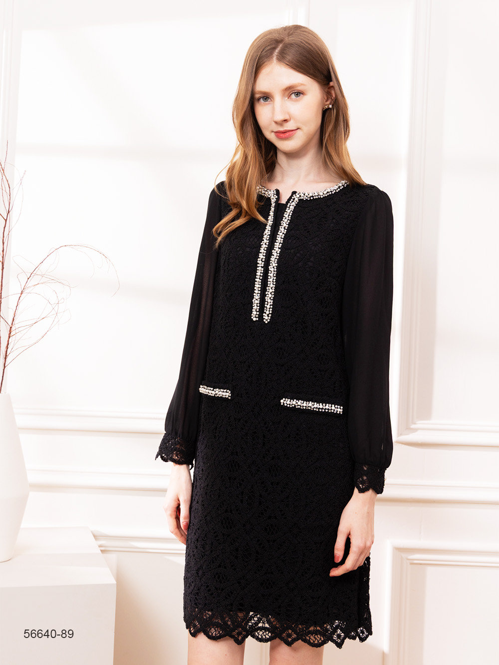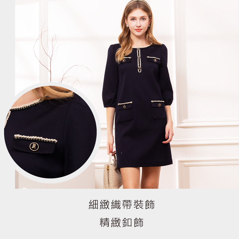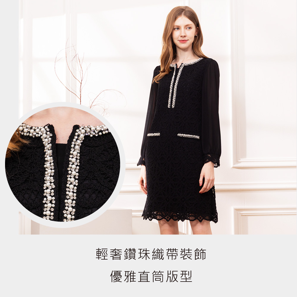 日本進口鉤針蕾絲面料 輕奢鑽珠織帶裝飾 優雅直筒版型