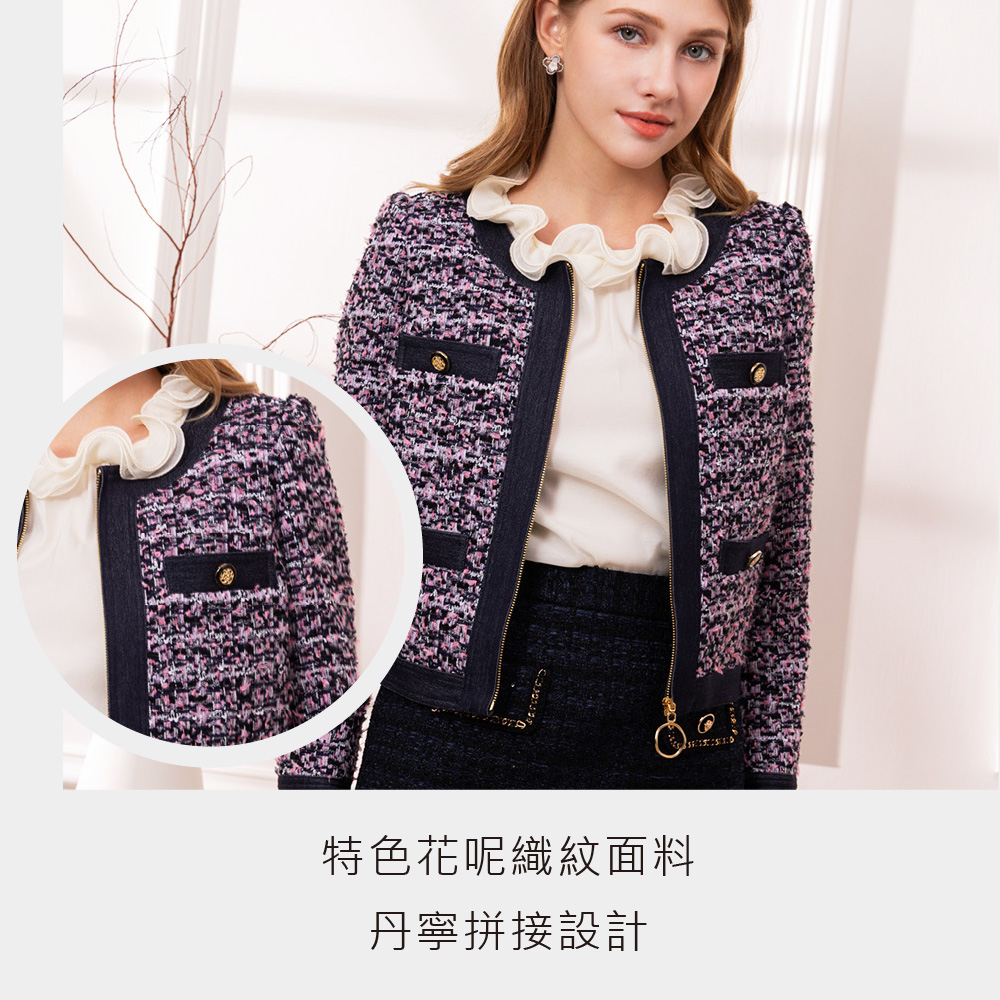 質感花呢織紋面料 羅紋收口設計 兩件式多層次穿搭