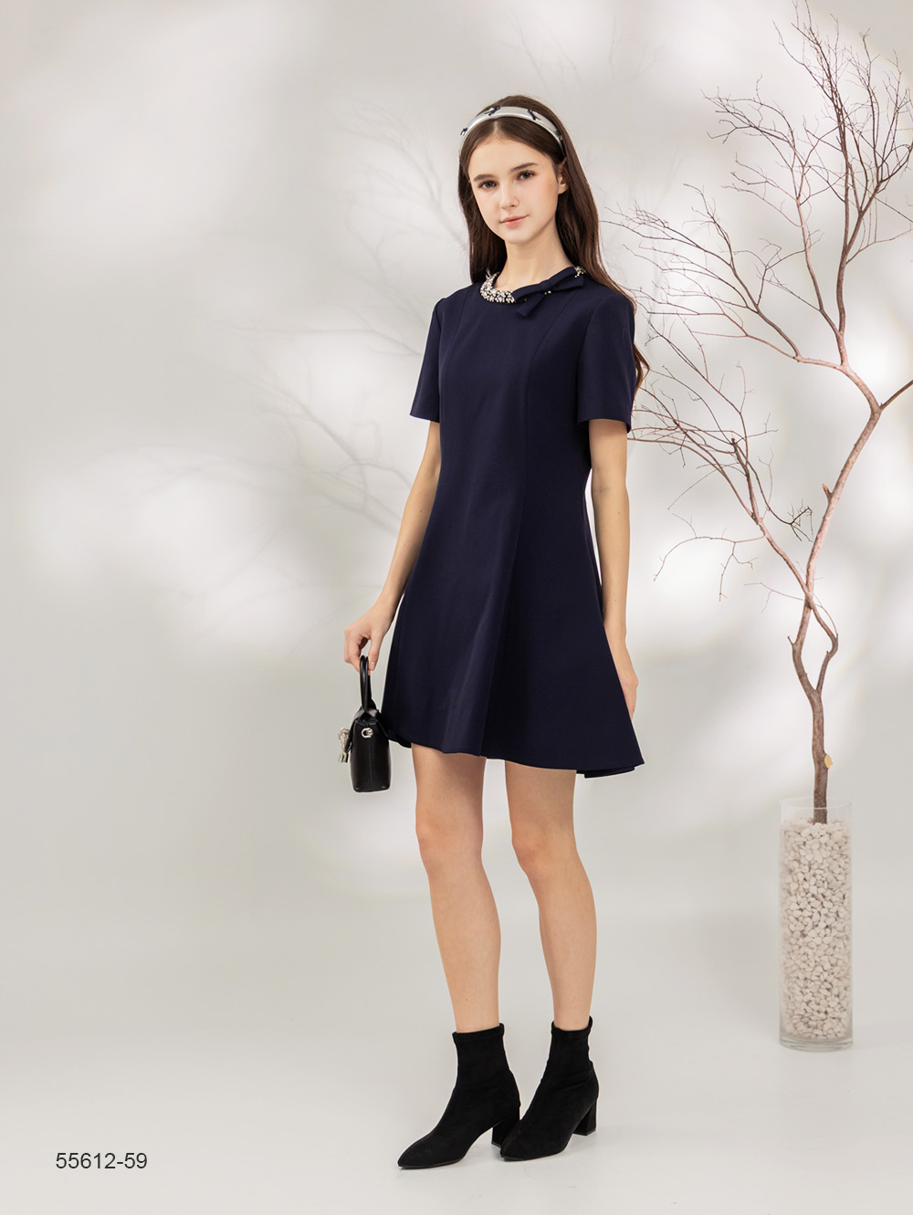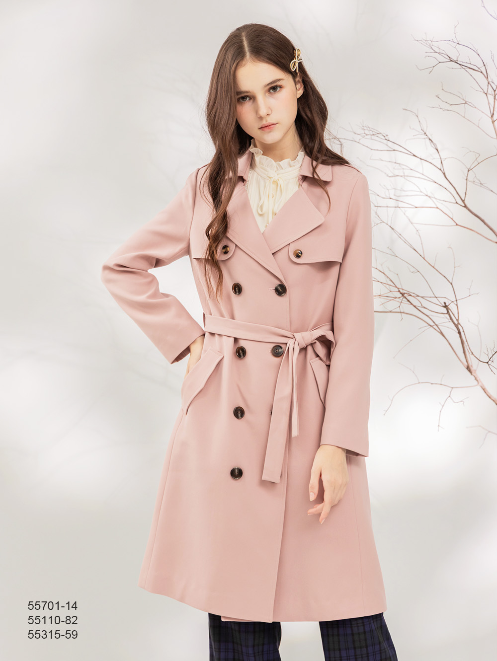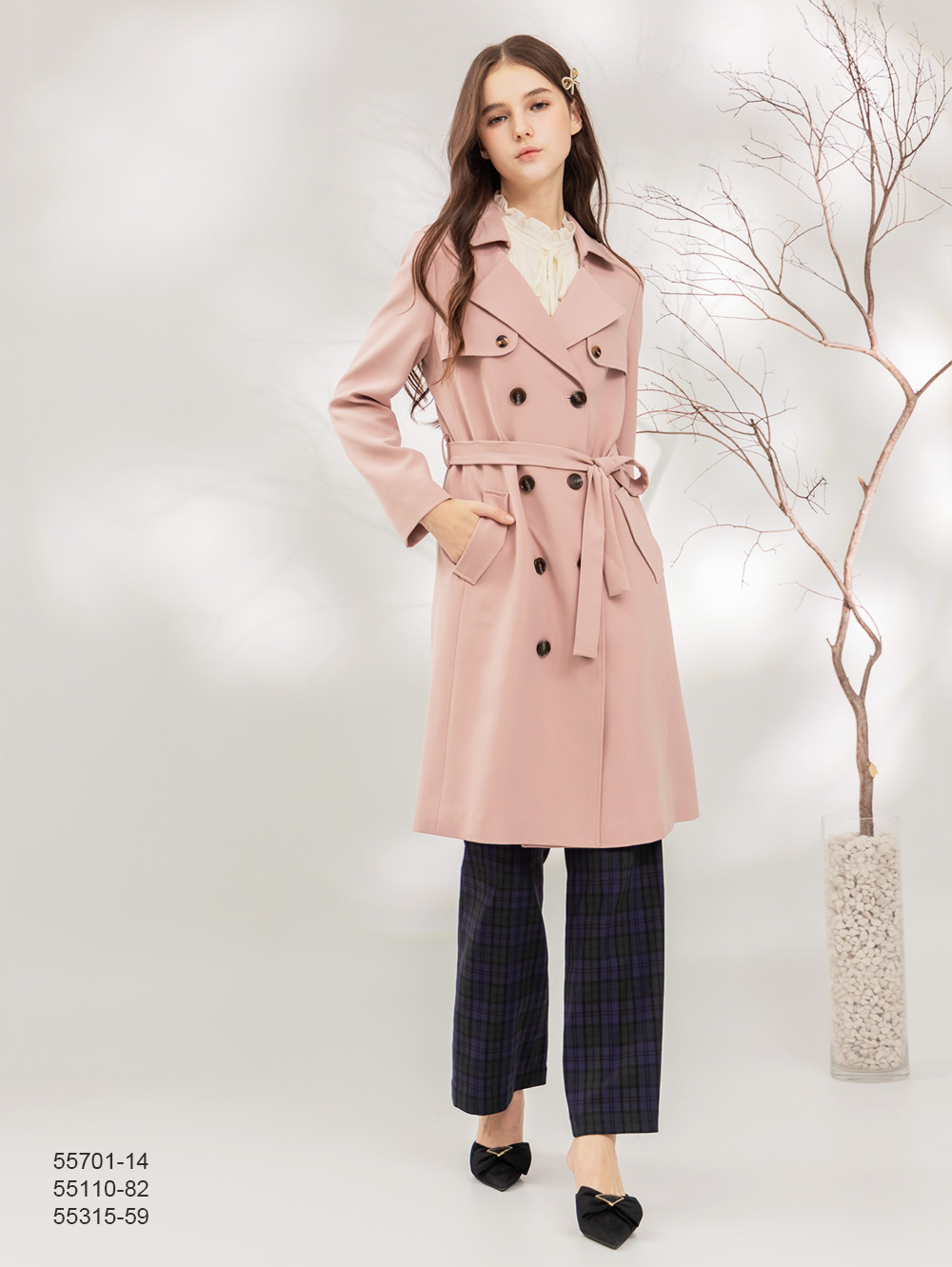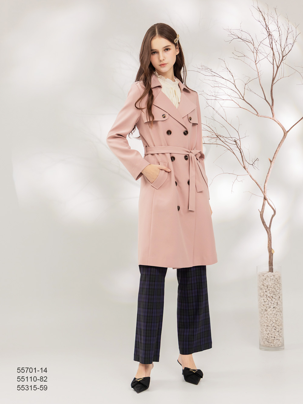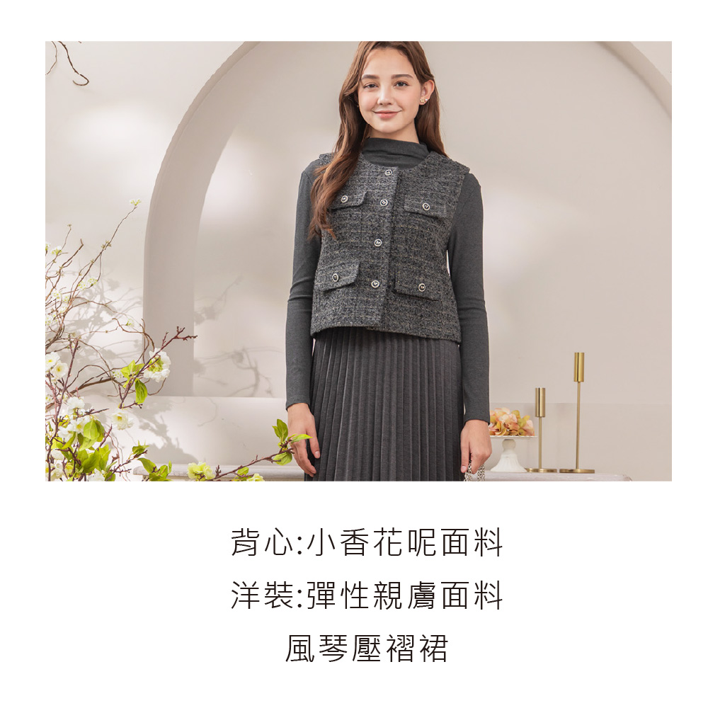 質感粗呢面料 氣質修身版型 裙身壓褶設計 附腰帶