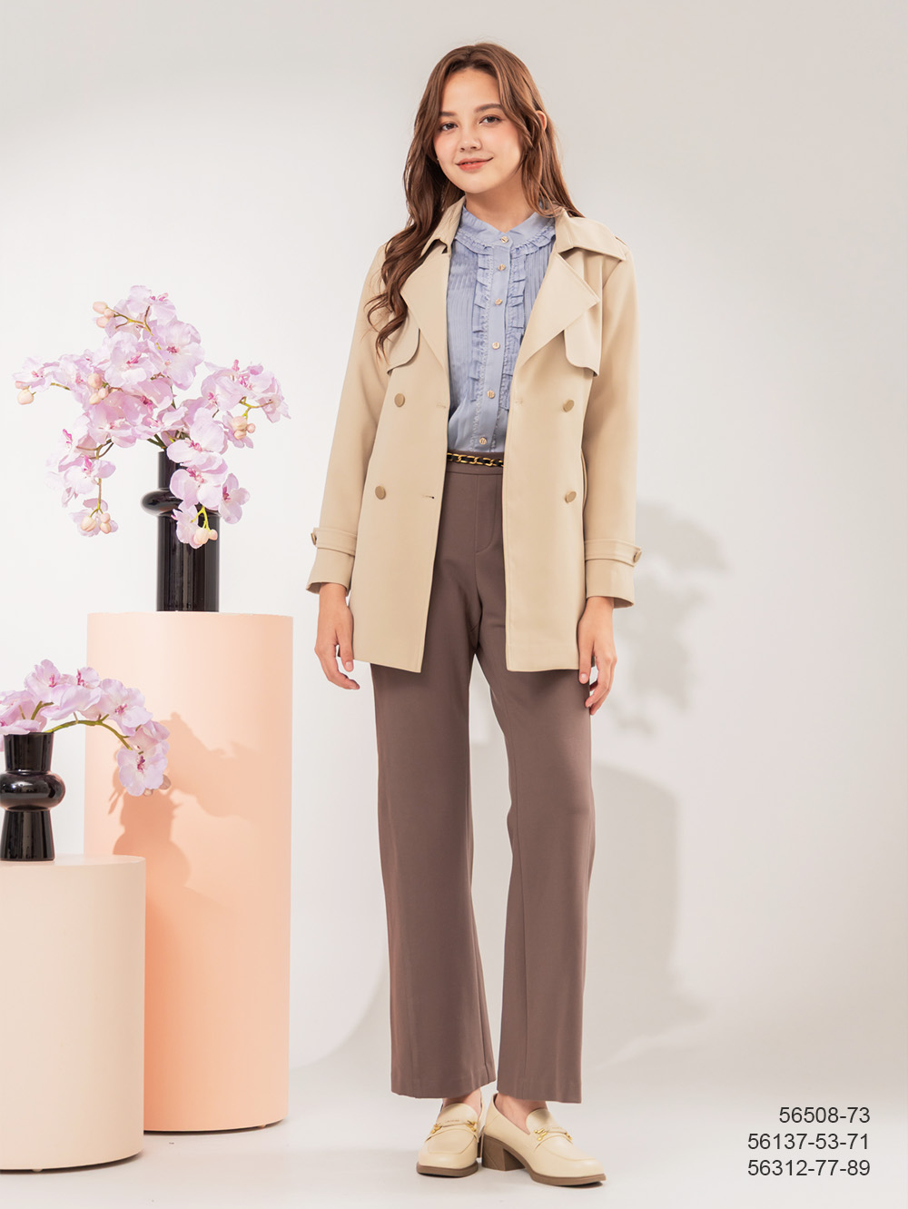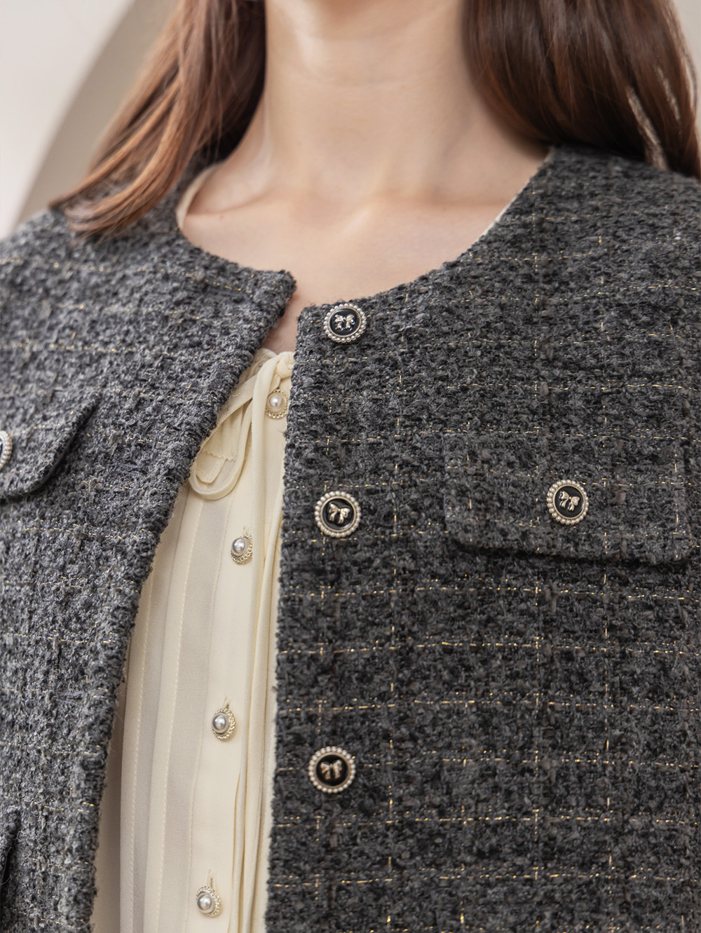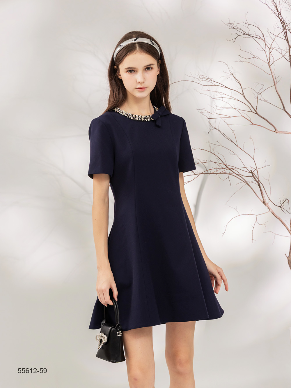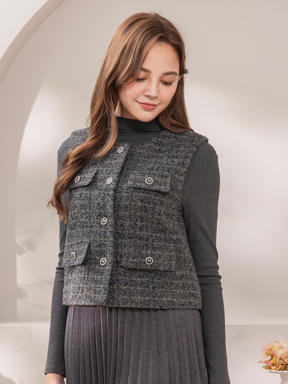 質感粗呢面料 氣質修身版型 裙身壓褶設計 附腰帶