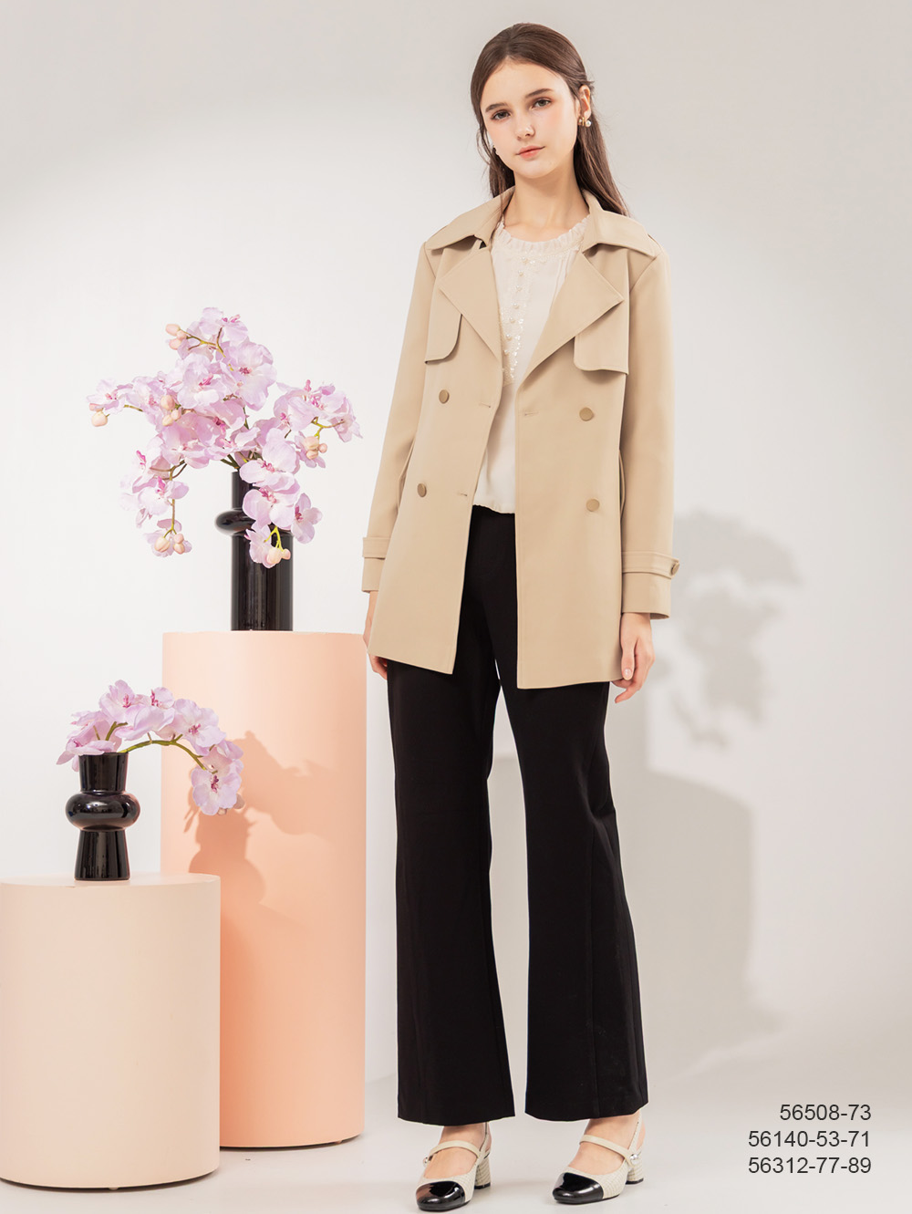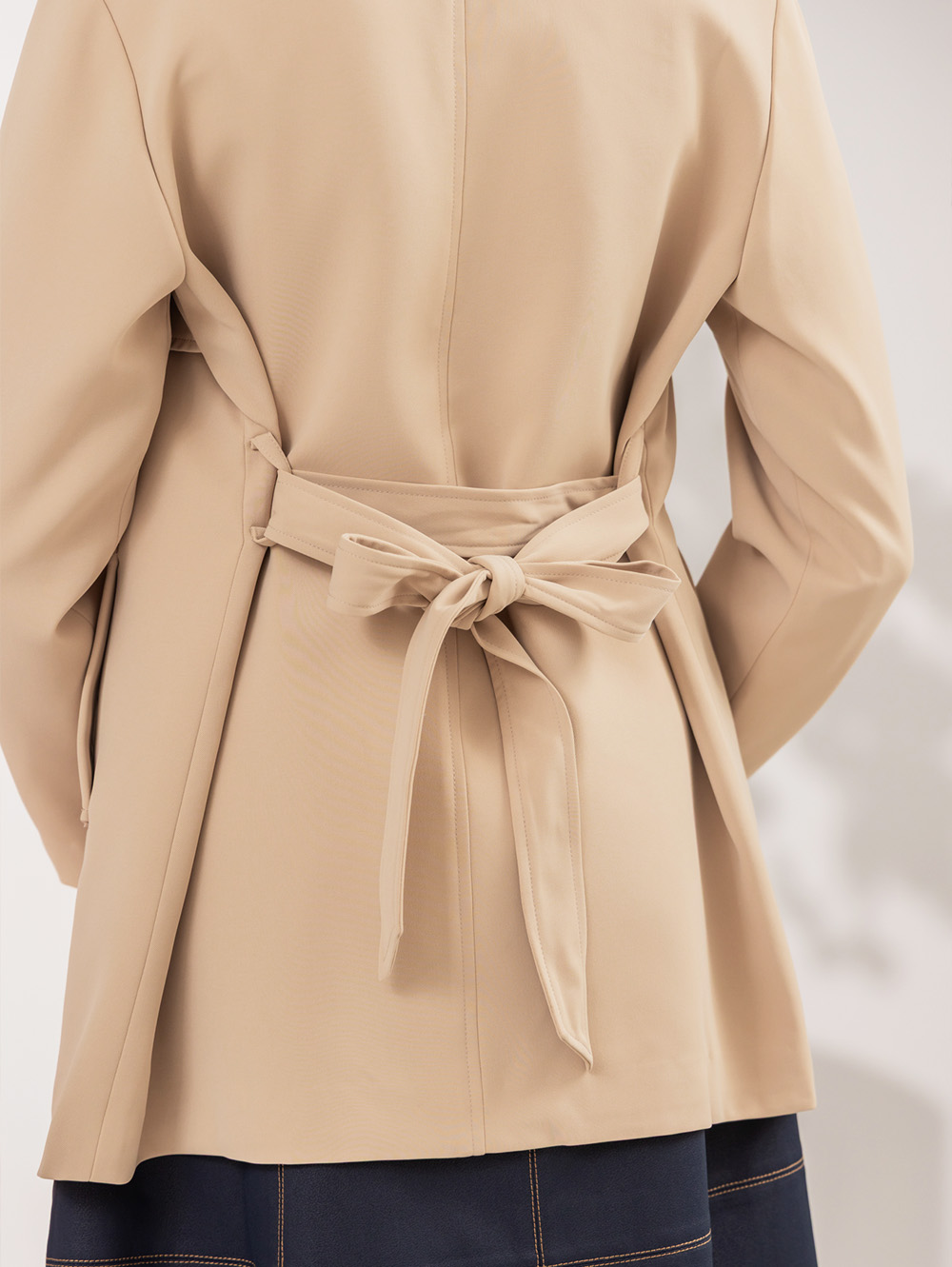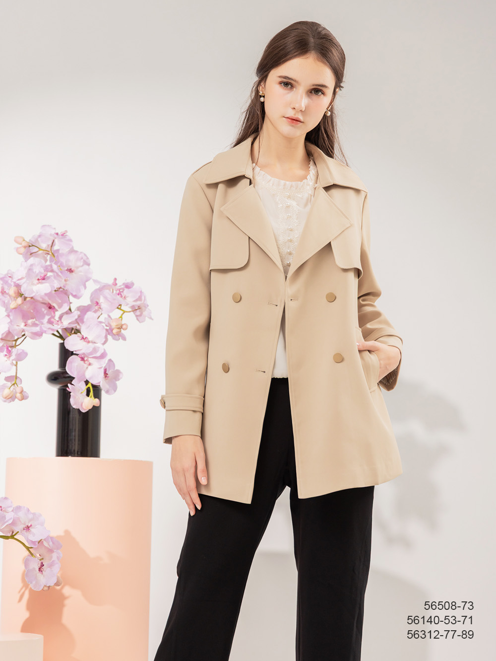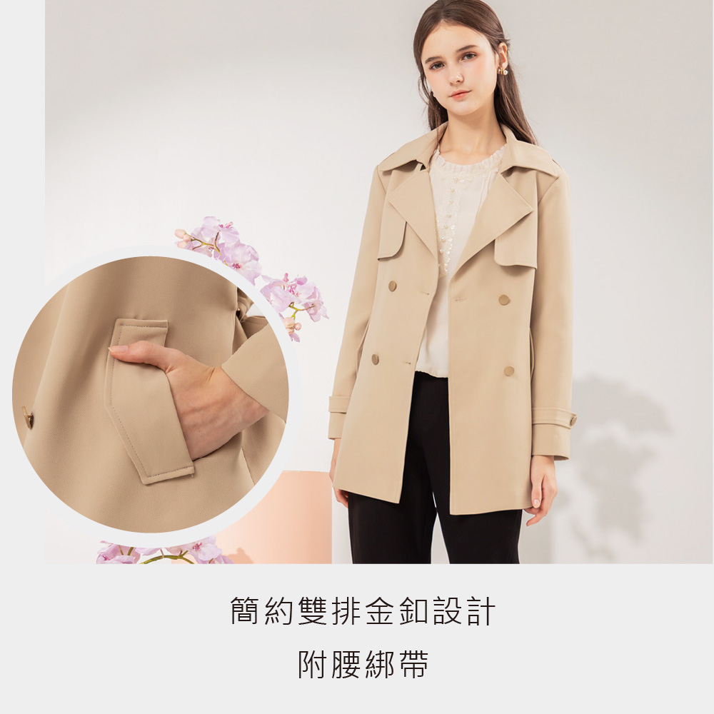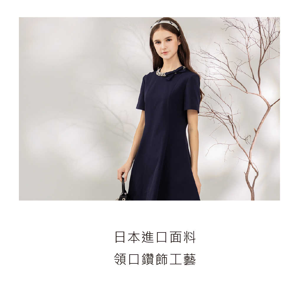質感素色面料與蕾絲面料拼接 細緻釦飾 舒適修身版型 附腰帶