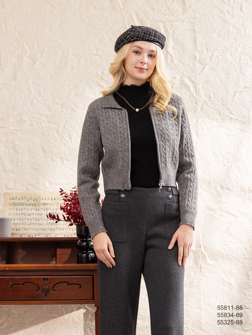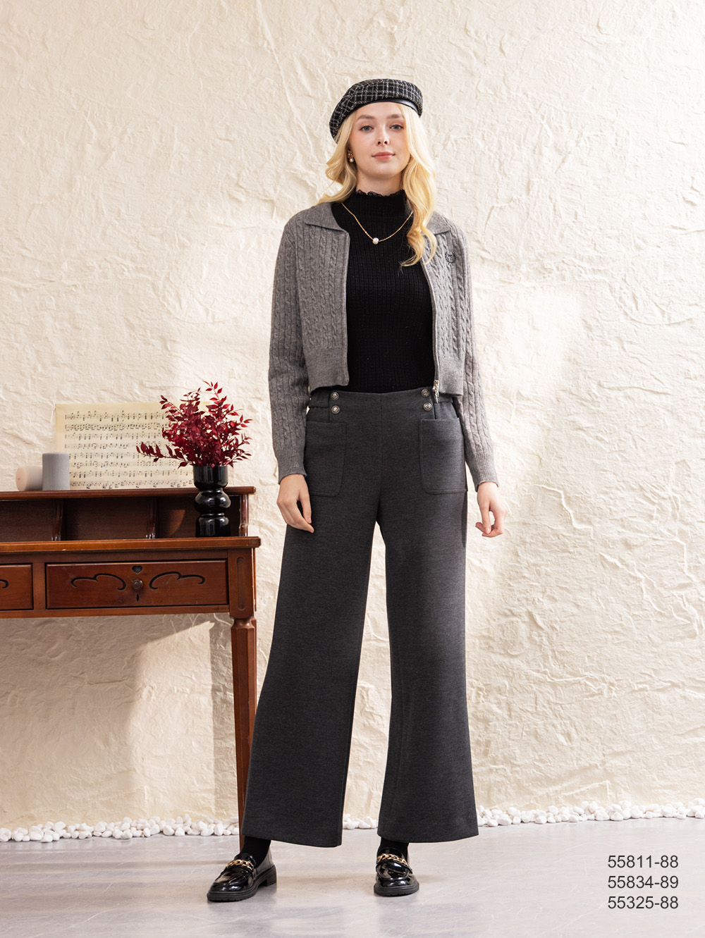 舒適暖厚面料 袋口裝飾設計 鬆緊帶腰身 修身版型