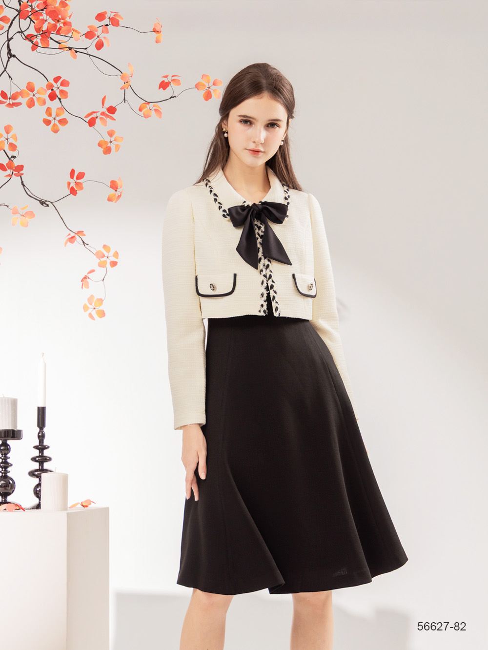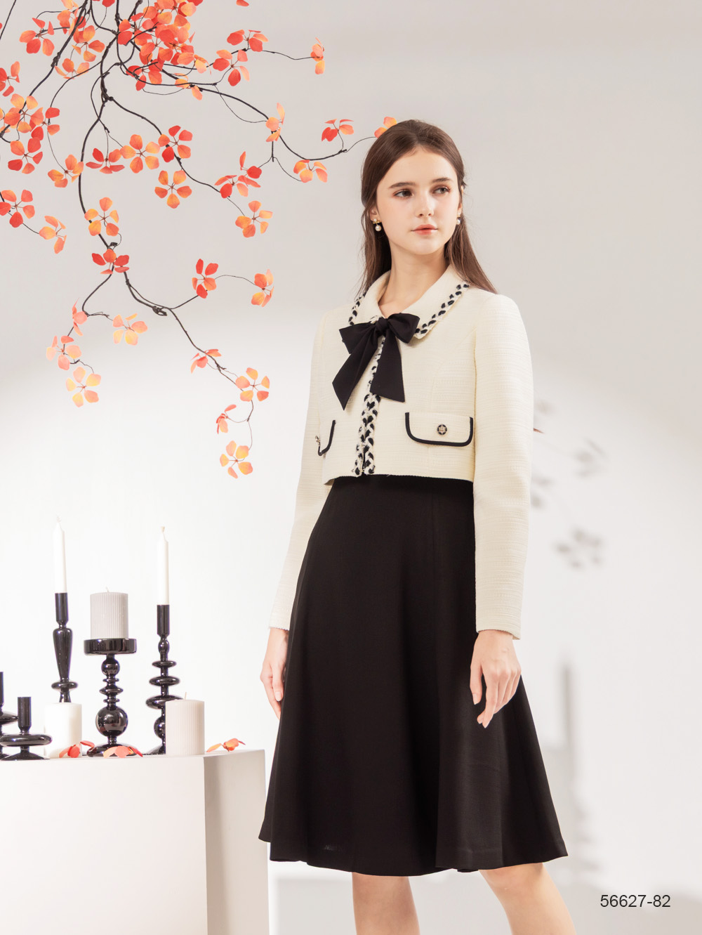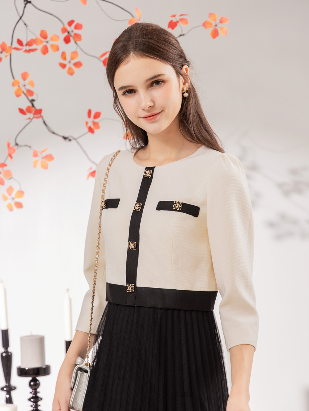 質感斜紋面料 細緻蕾絲領 經典修身版型
