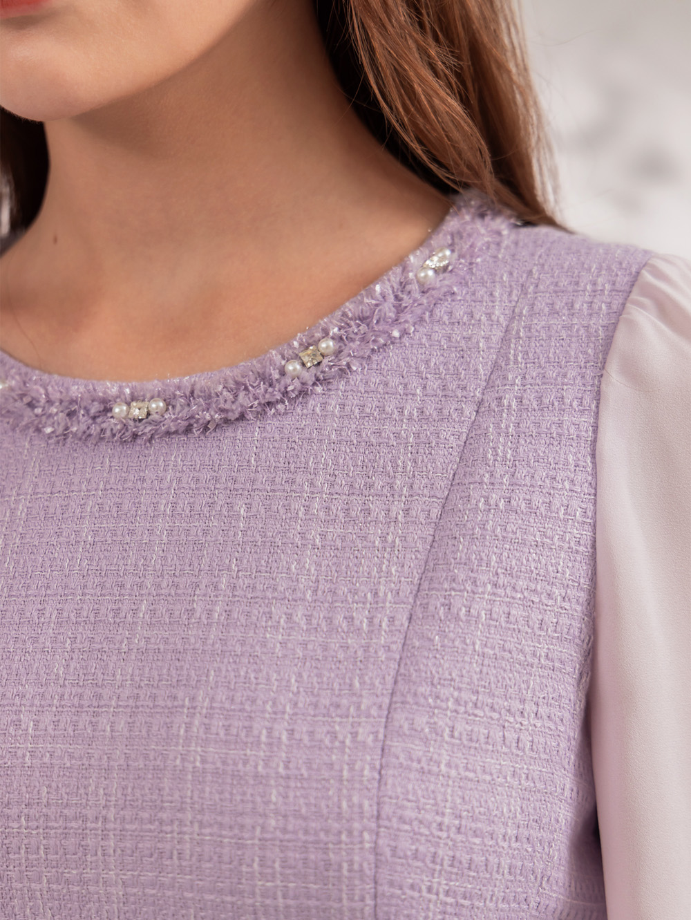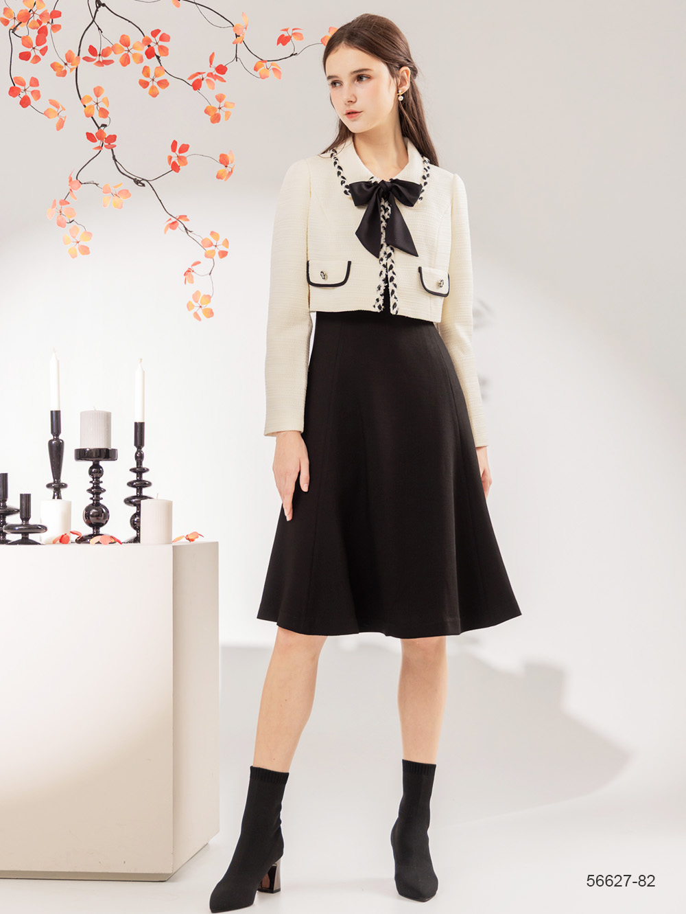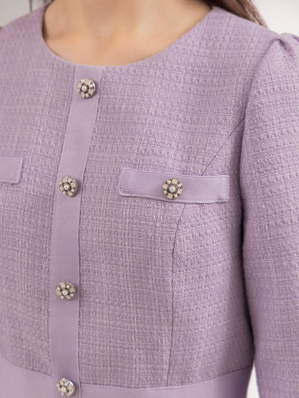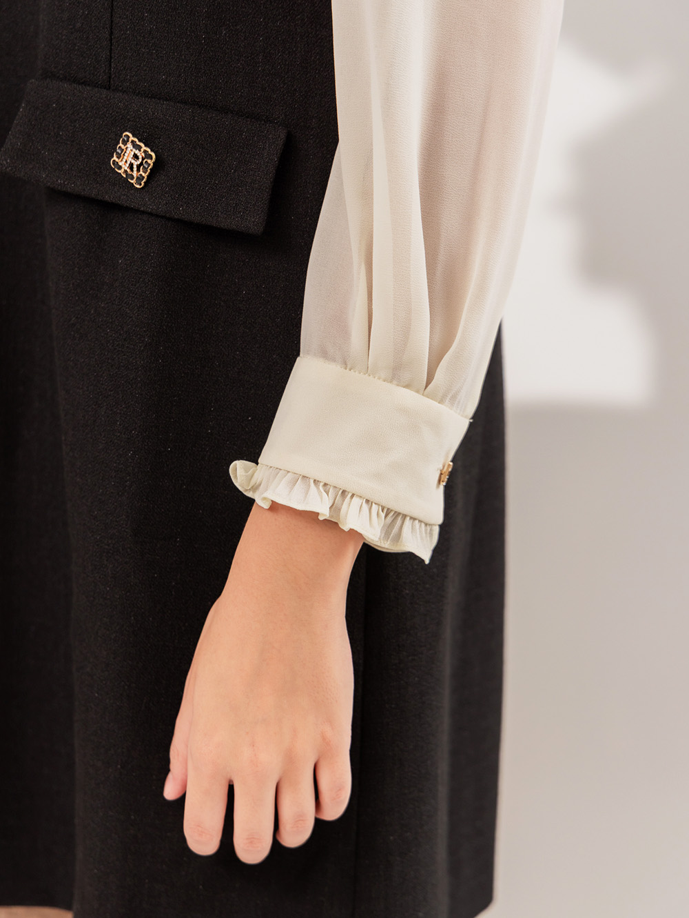 質感斜紋面料 細緻蕾絲領 經典修身版型