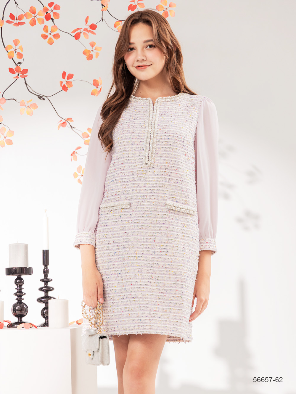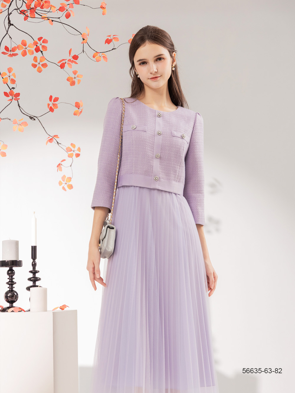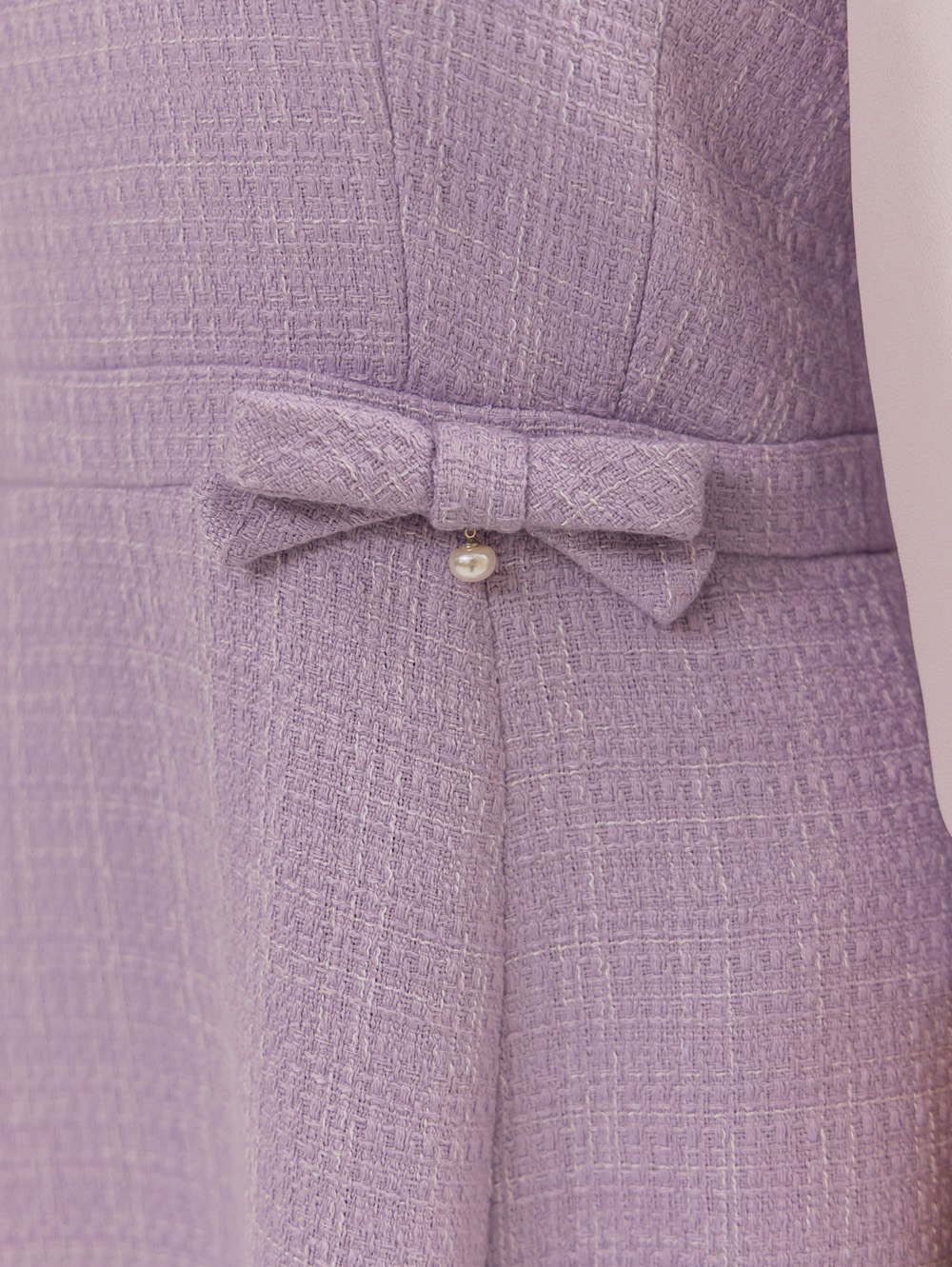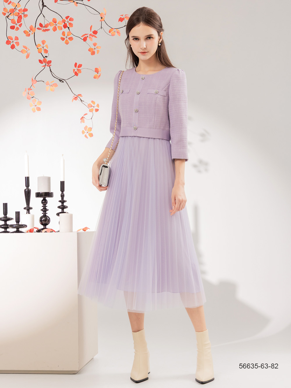 質感粗呢面料 氣質修身版型 裙身壓褶設計 附腰帶