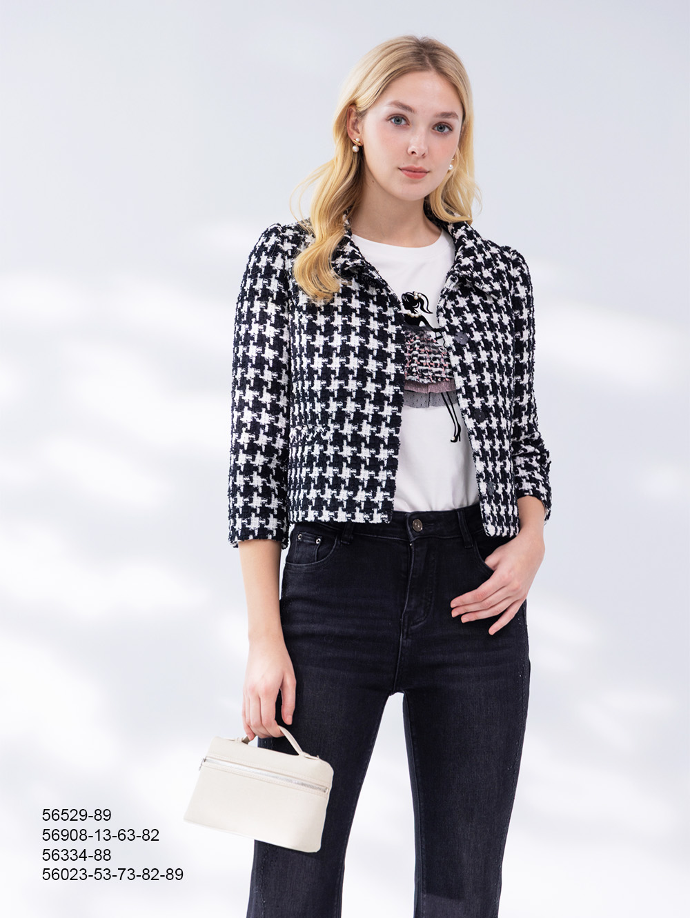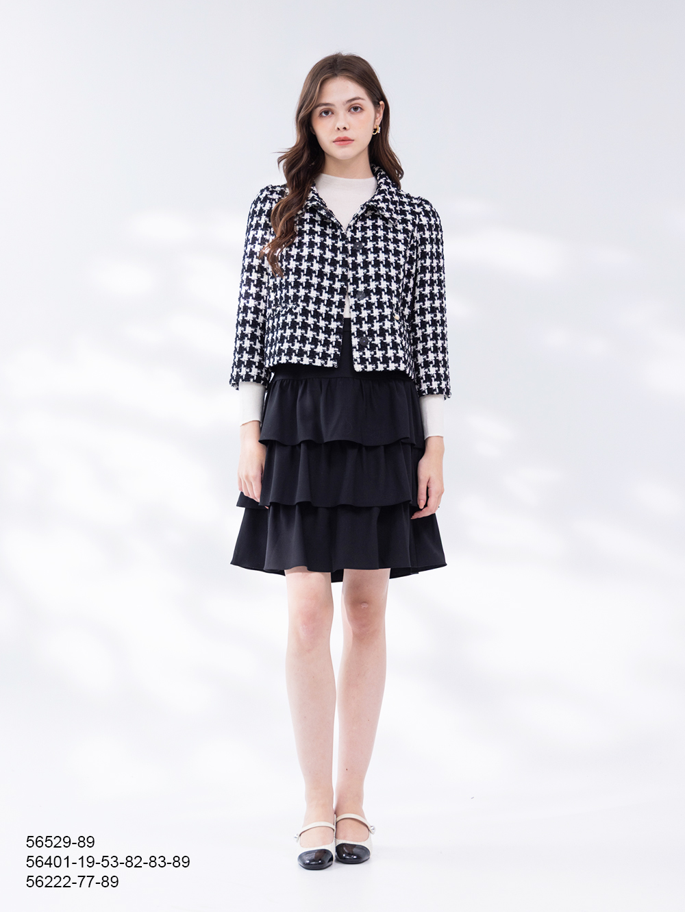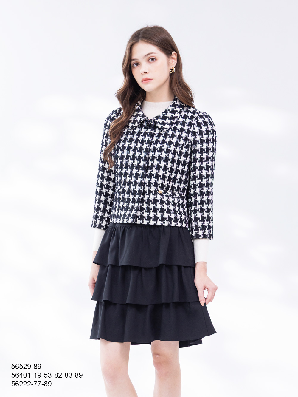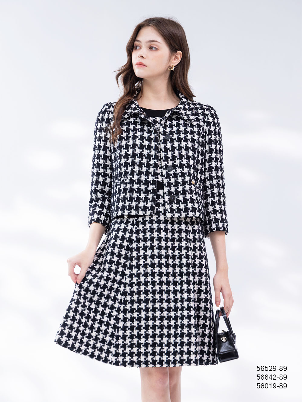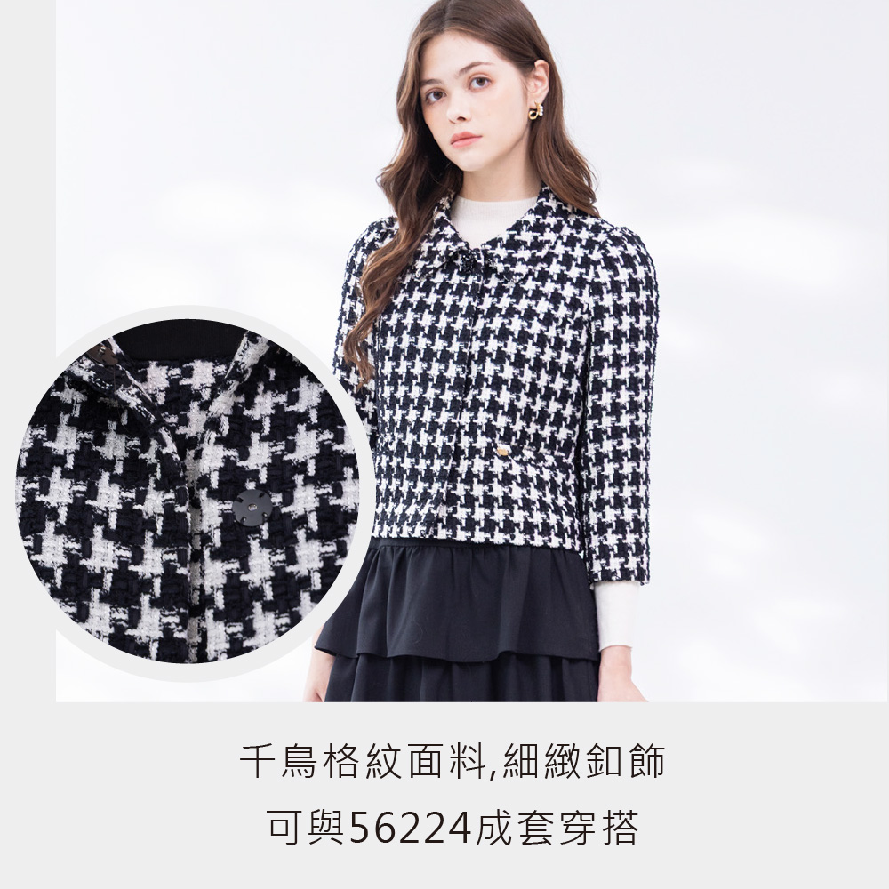 千鳥格紋面料 細緻釦飾 可與56224成套穿搭