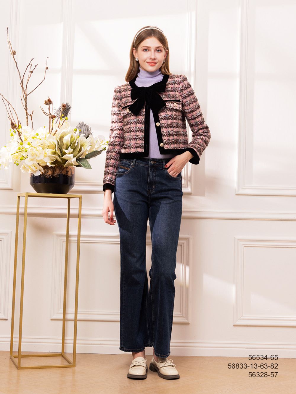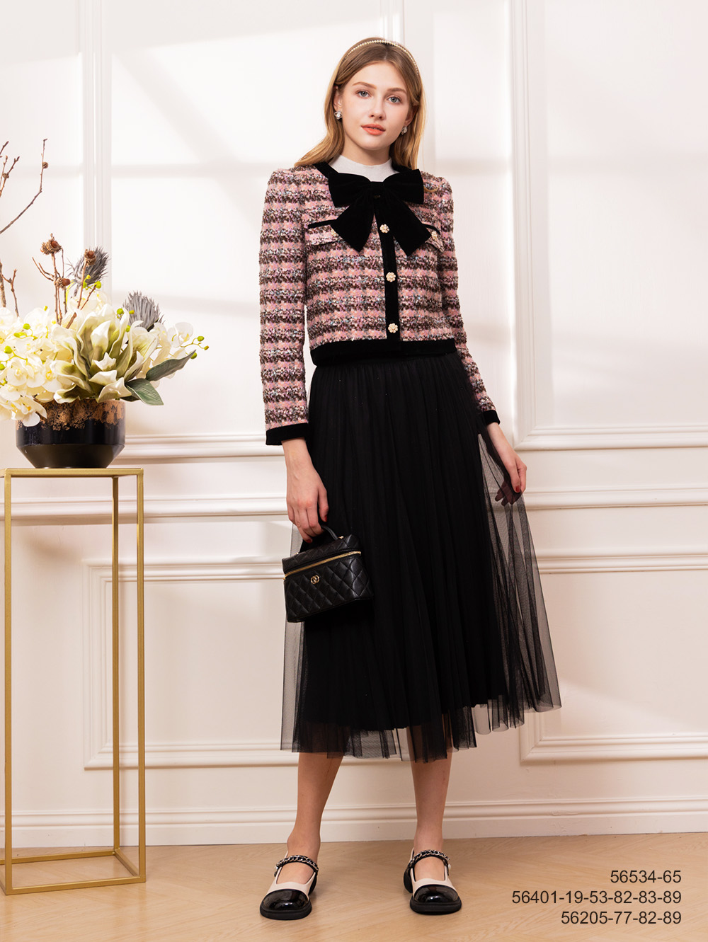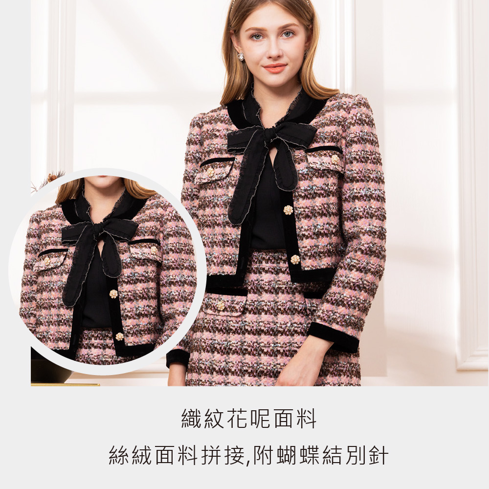 織紋花呢面料 絲絨面料拼接 附蝴蝶結別針 可與56226成套穿搭
