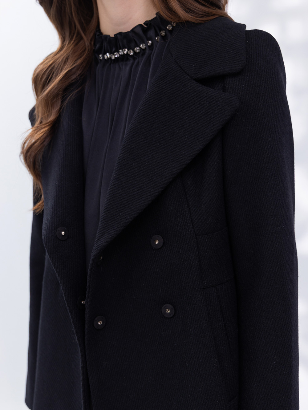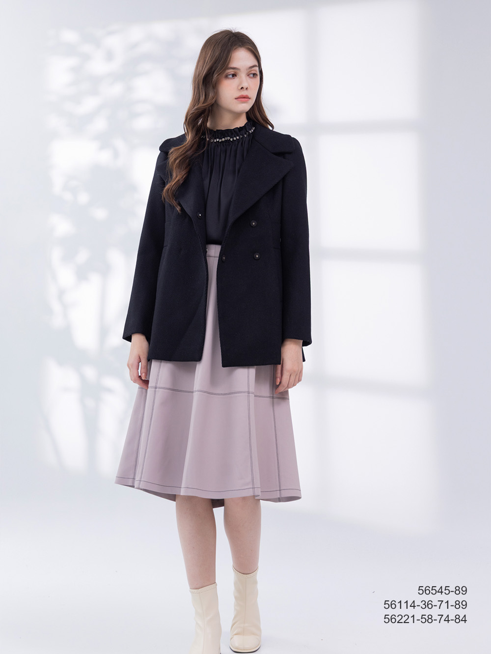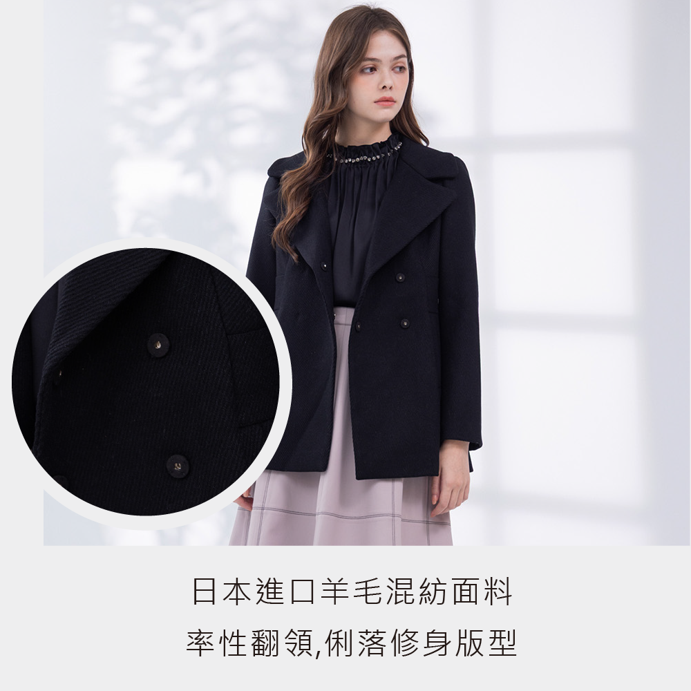 日本進口羊毛混紡面料 率性翻領 俐落修身版型