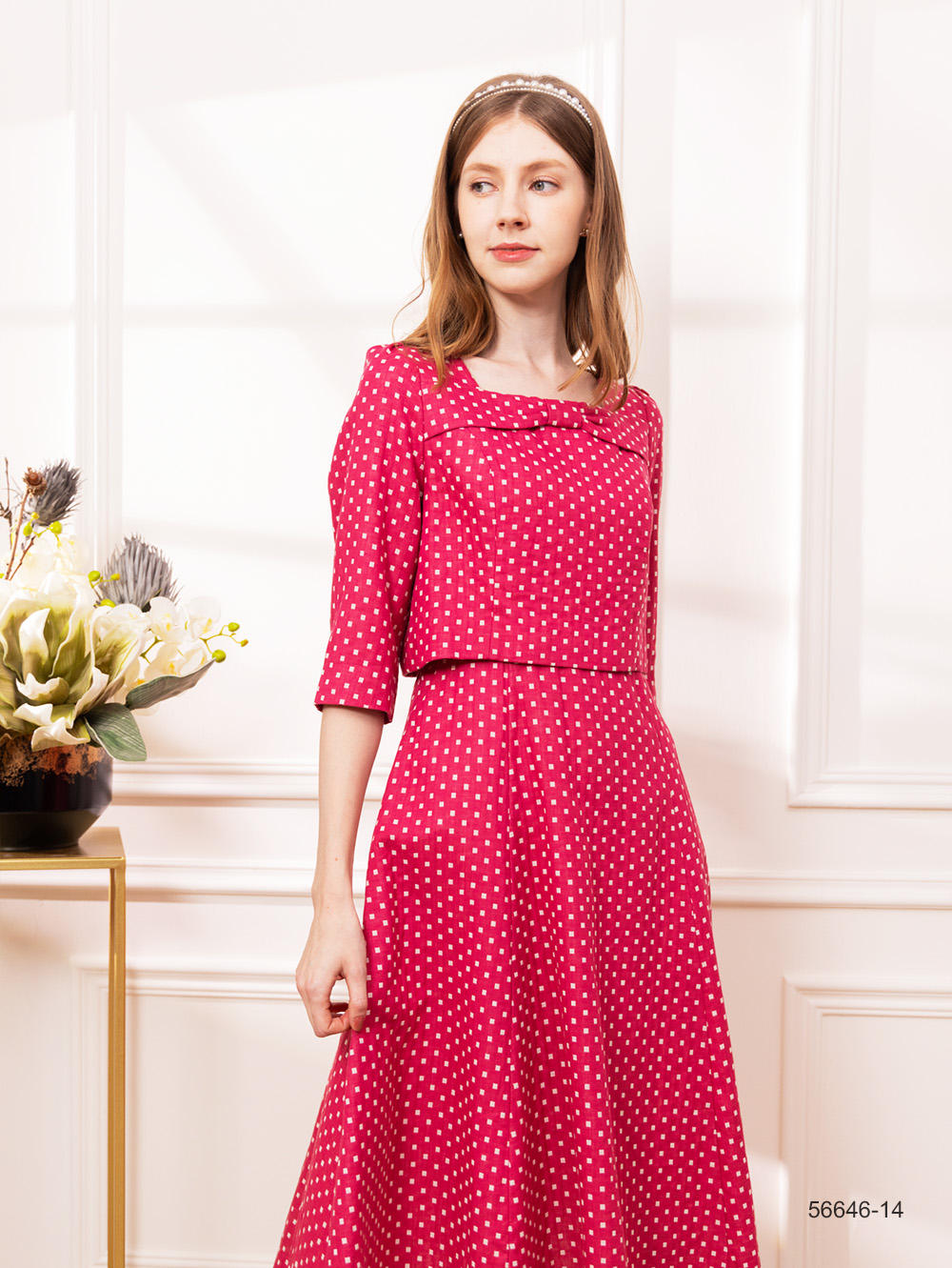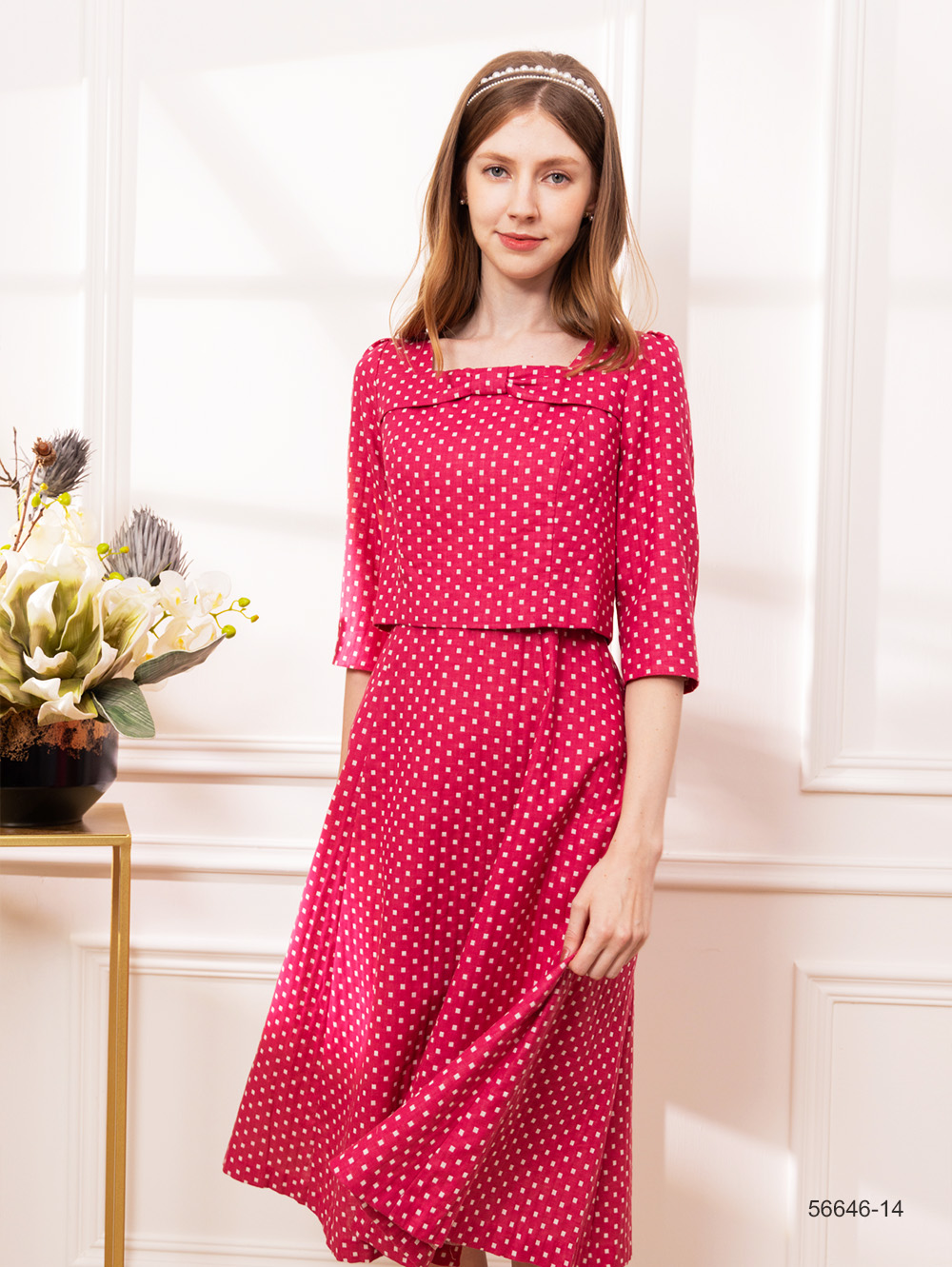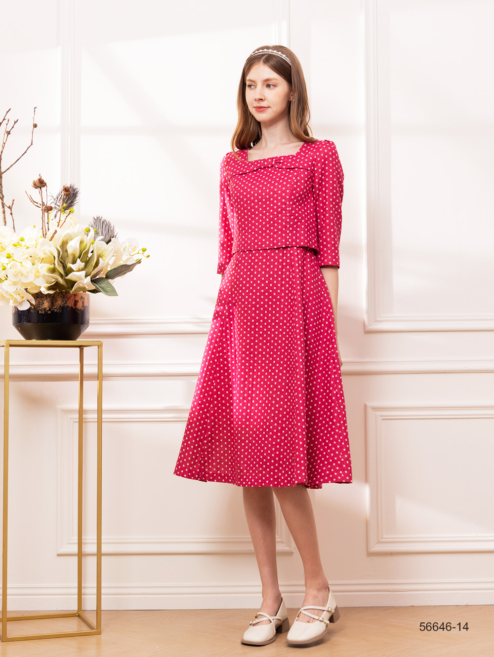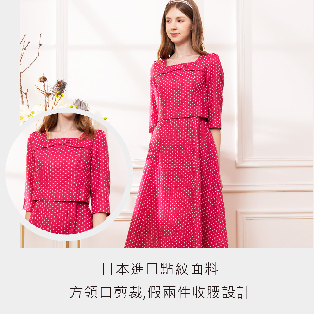 日本進口點紋面料 方領口剪裁 假兩件收腰設計
