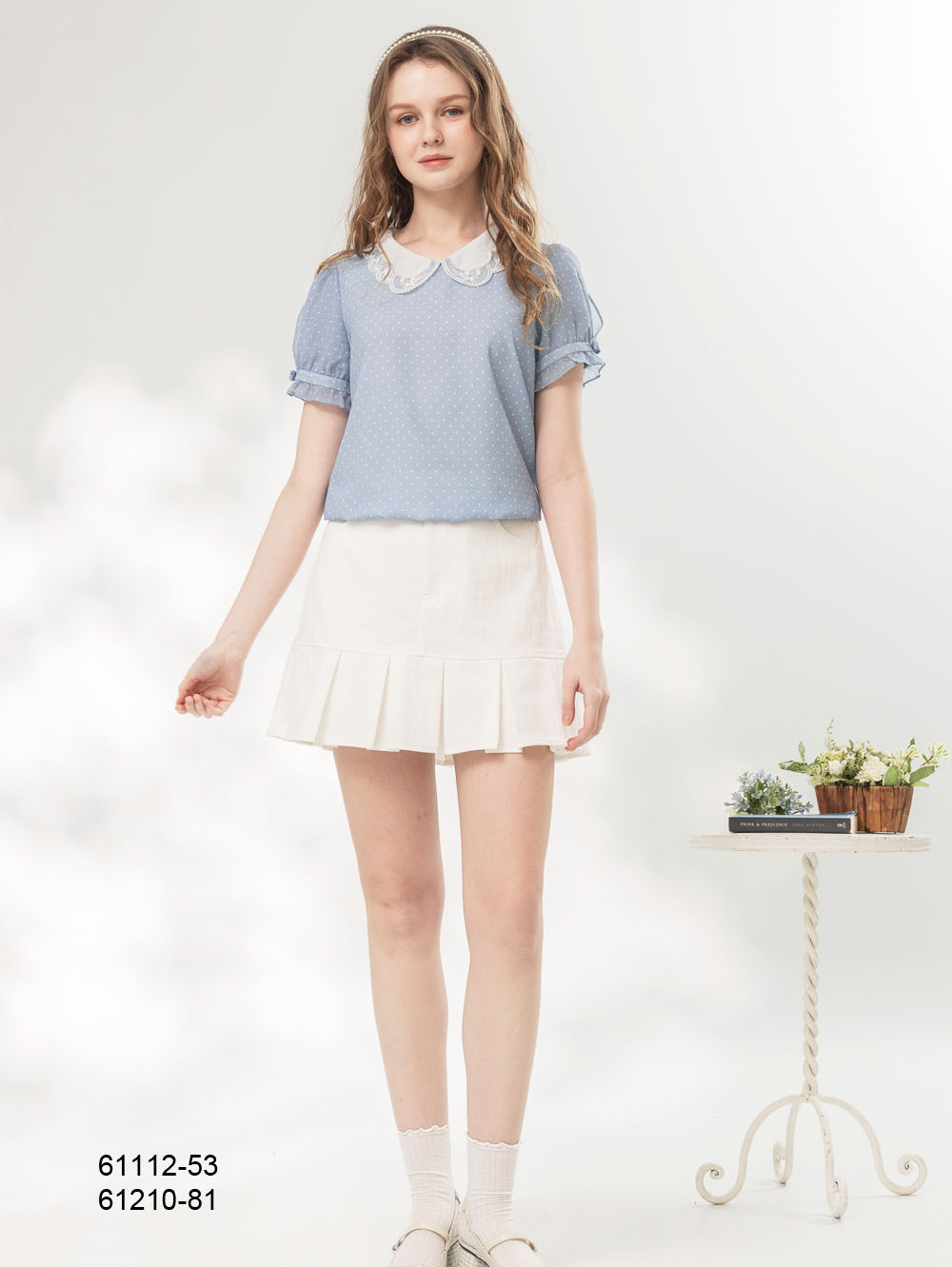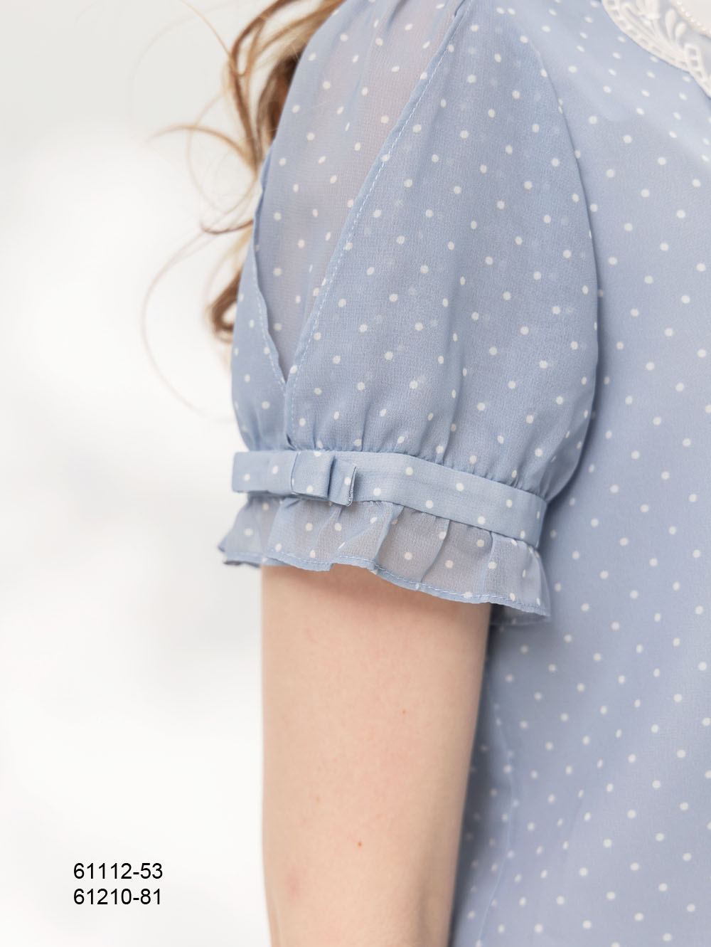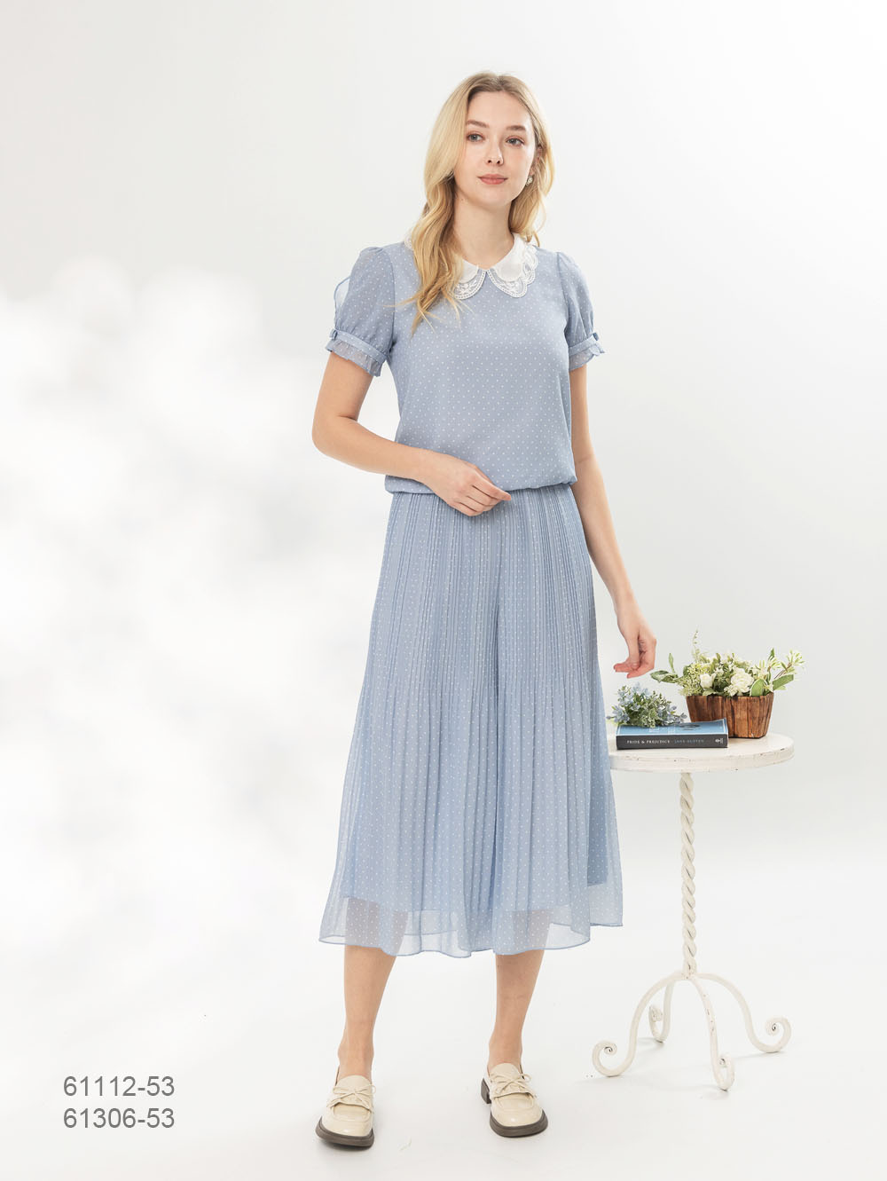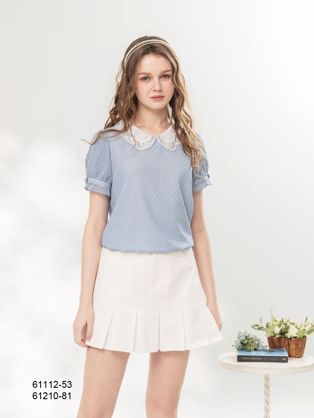 精緻蕾絲刺繡領片 霧藍細膩波點印花 柔甜少女氣息