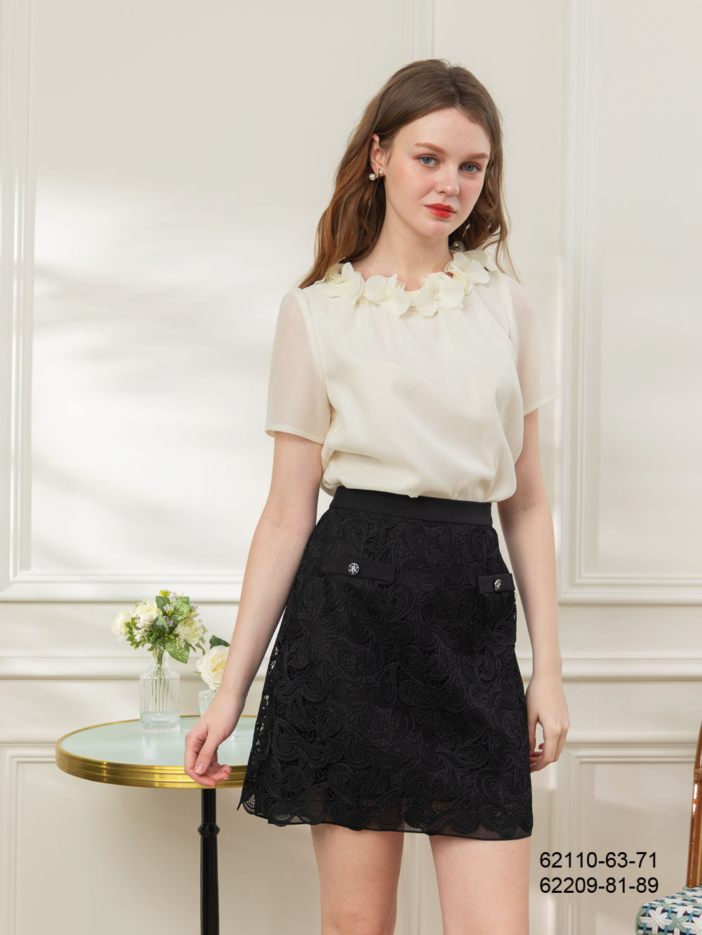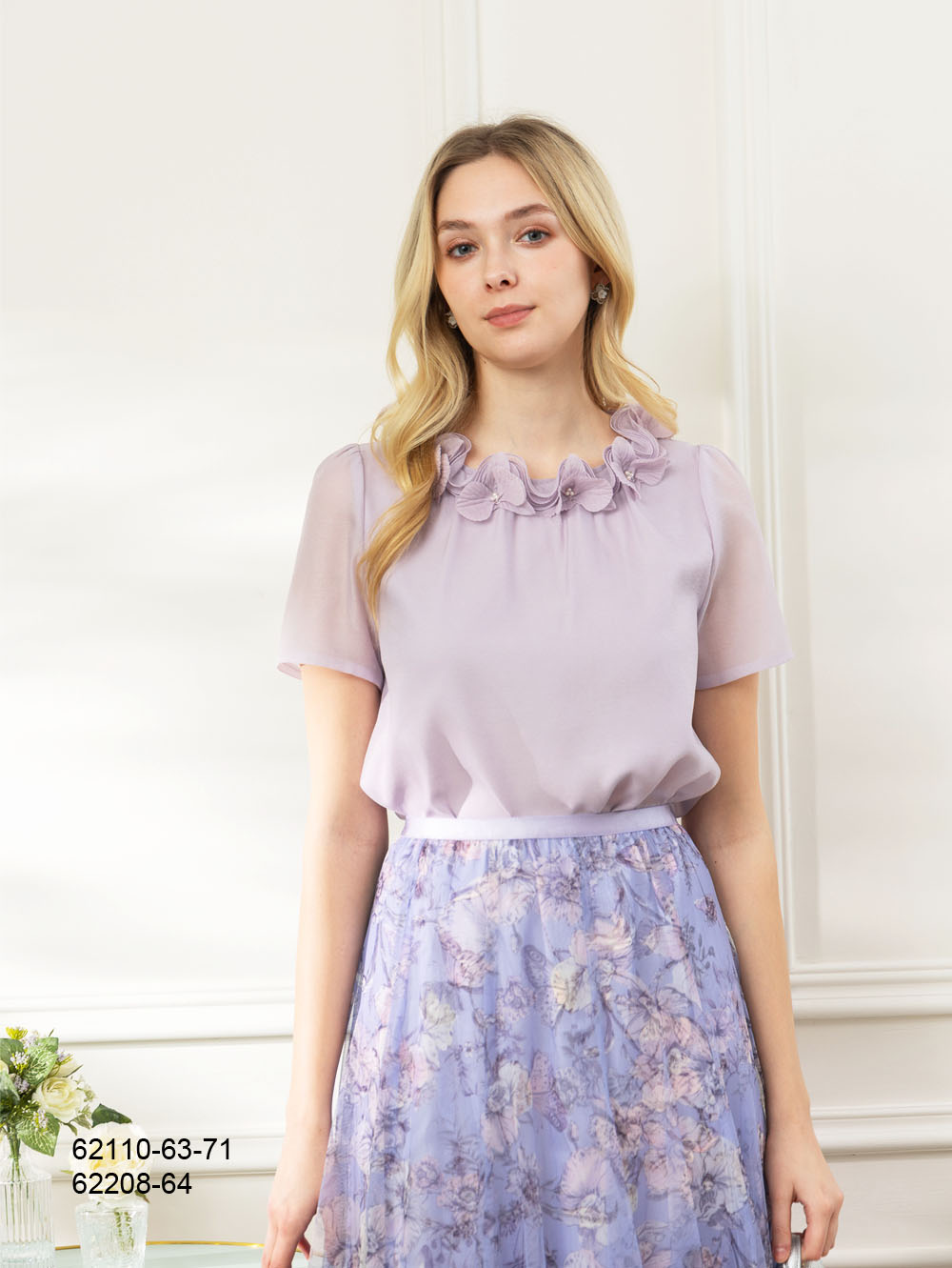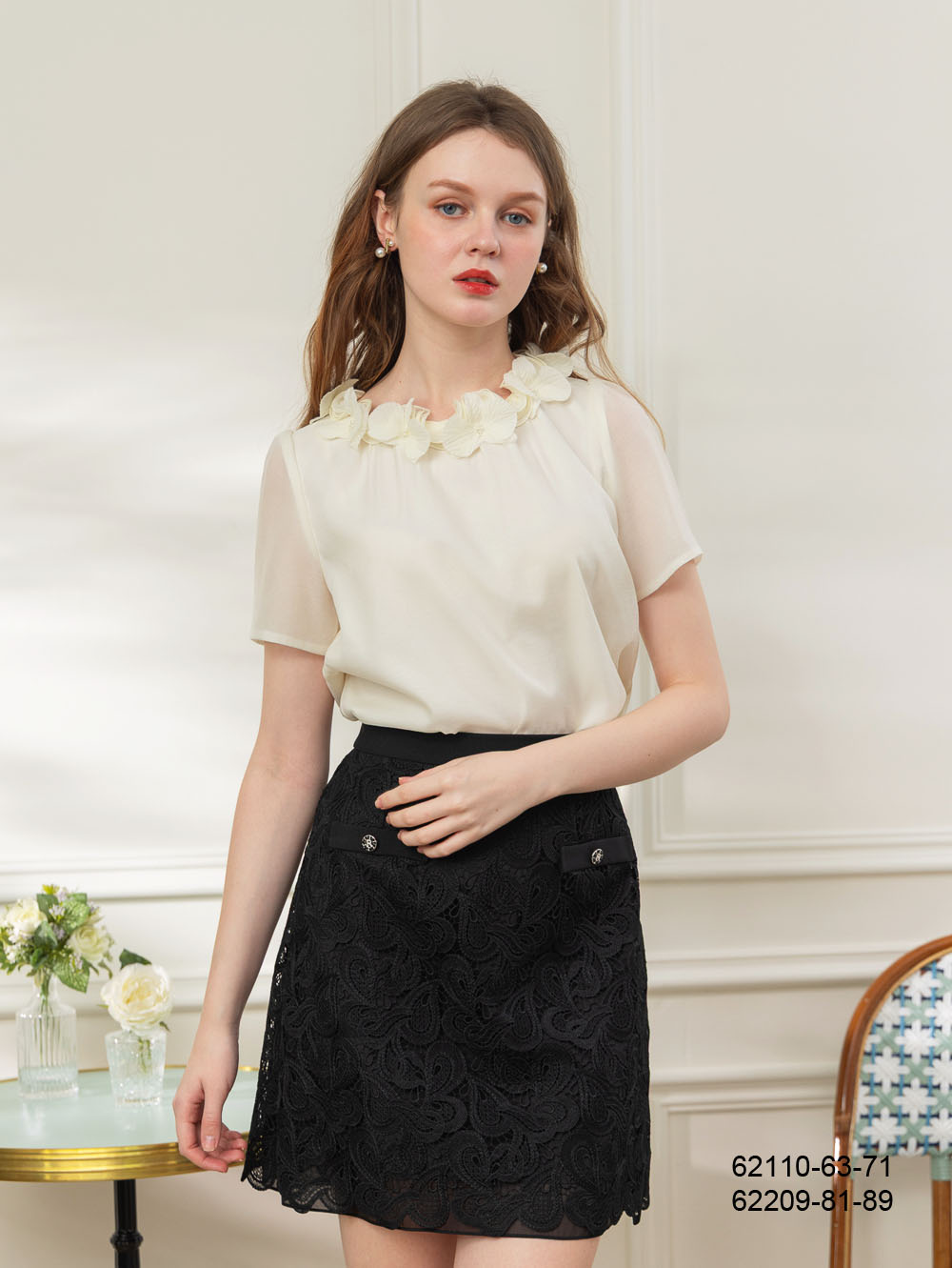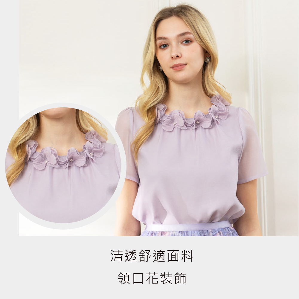 清透舒適面料 領口花裝飾 舒適寬鬆版型