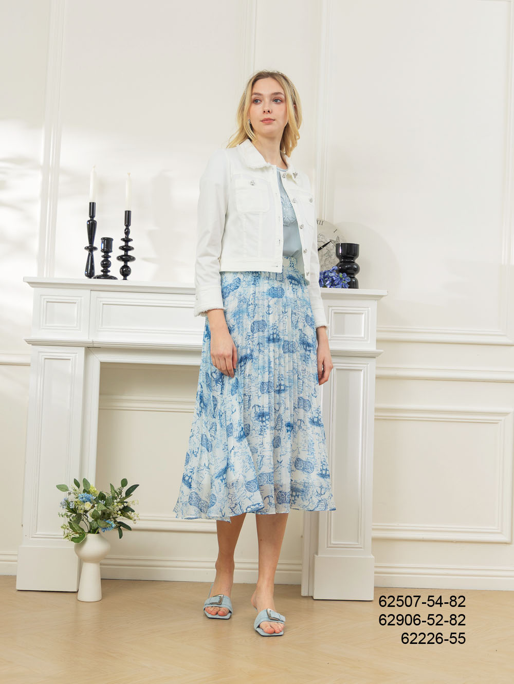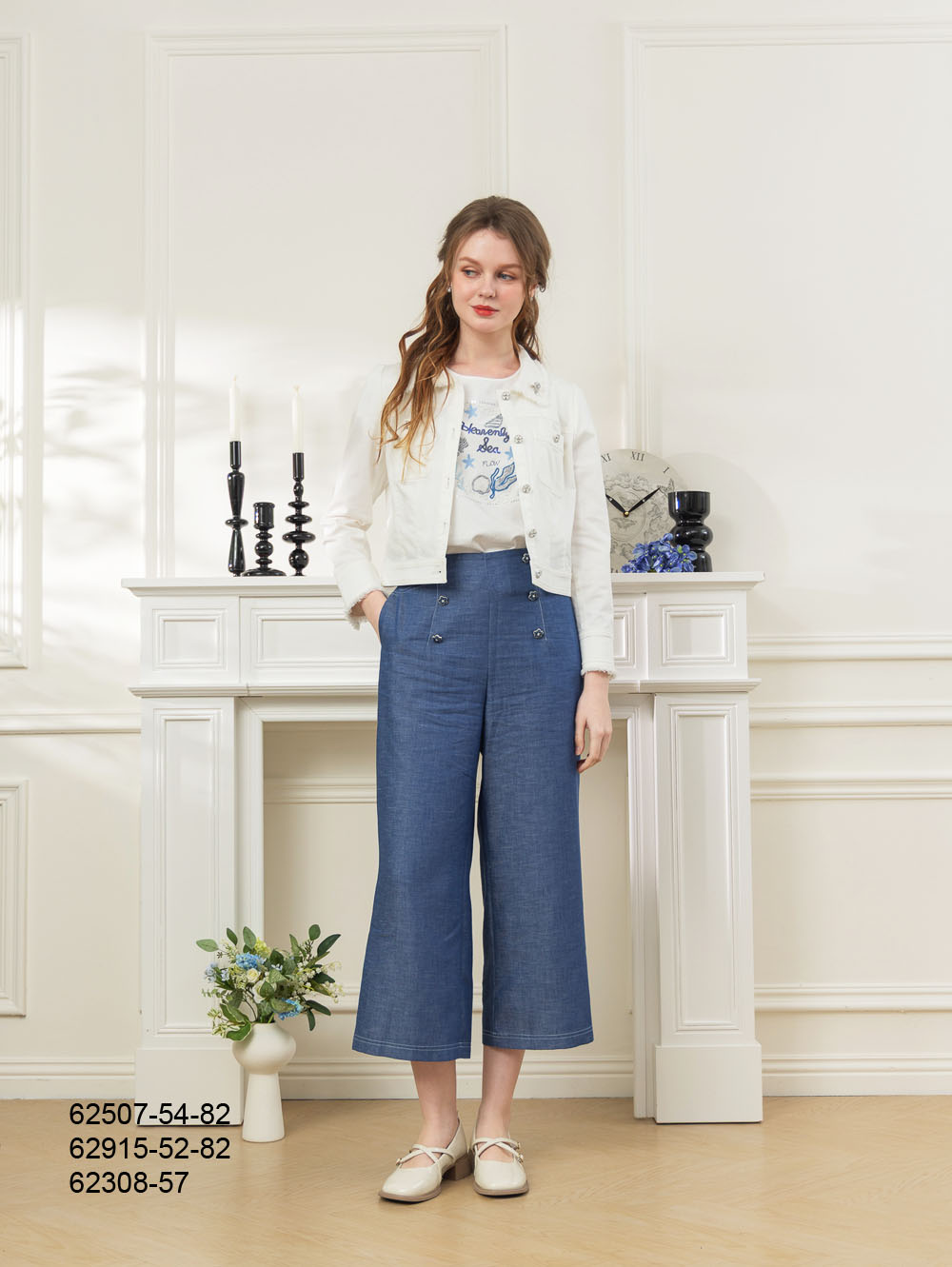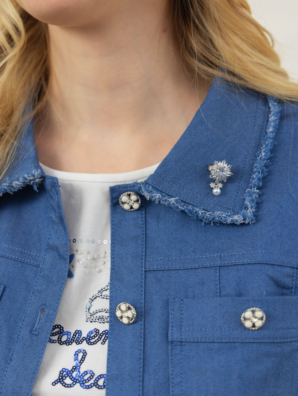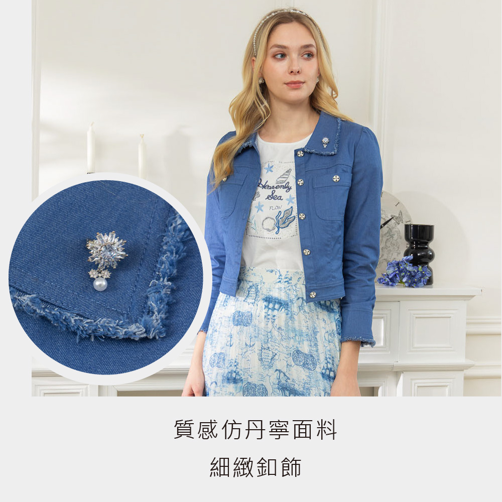 質感仿丹寧面料 細緻釦飾 袖口反摺設計 附裝飾別針