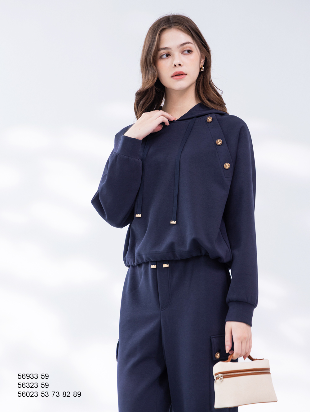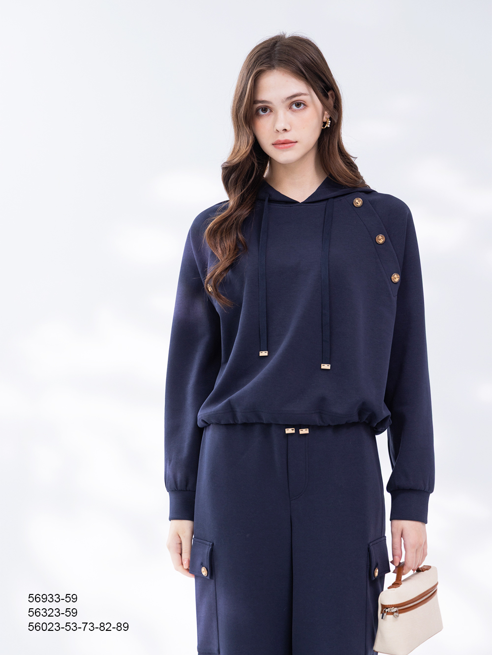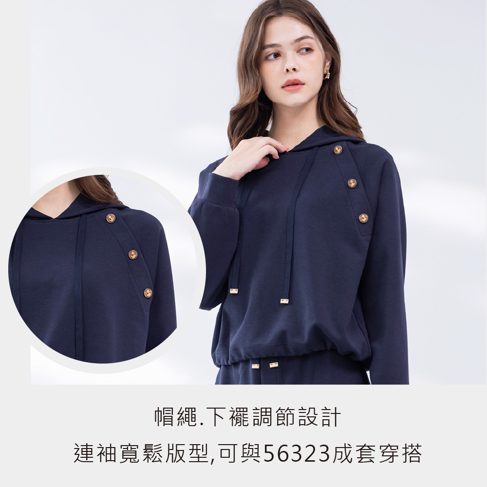 舒適棉面料 帽繩.下襬調節設計 連袖寬鬆版型 可與56323成套穿搭