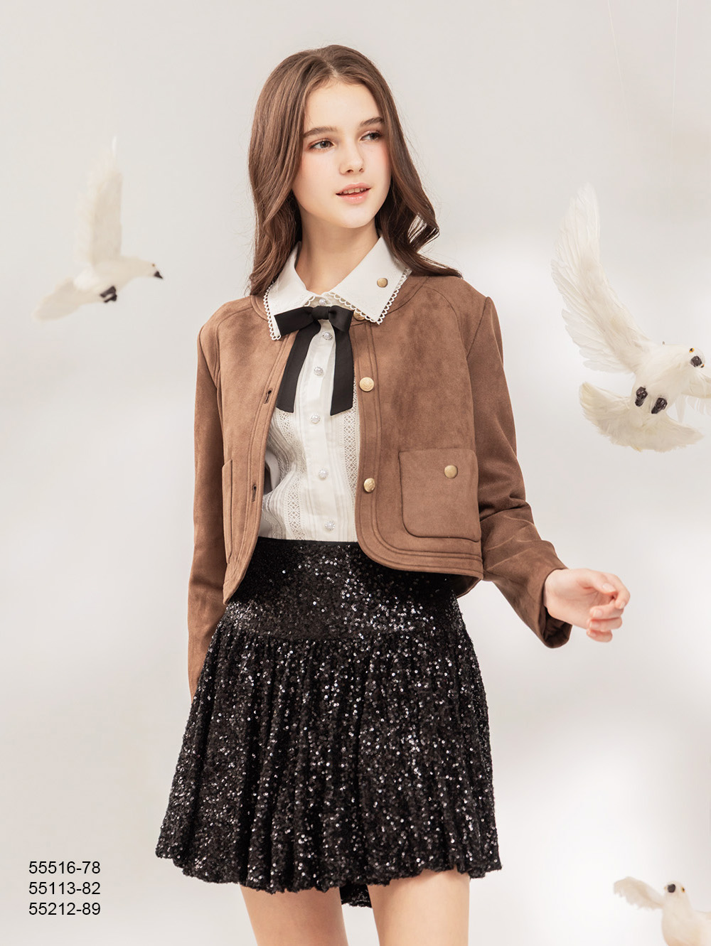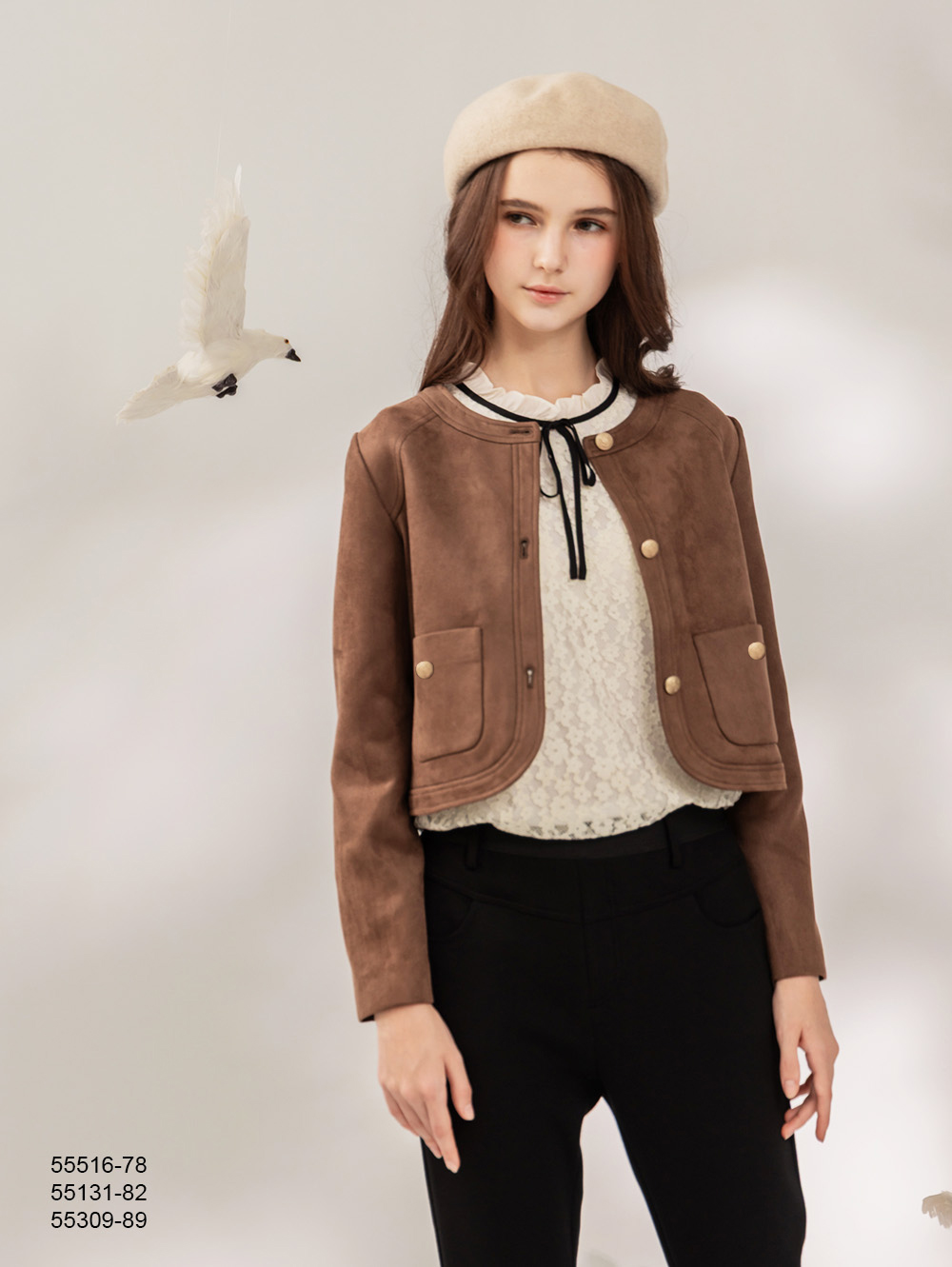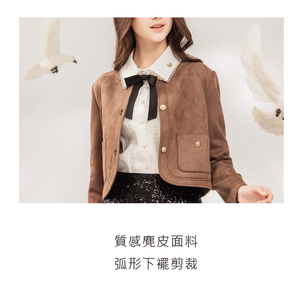 細緻毛蕾絲面料 小荷葉領設計 雪紡袖拼接