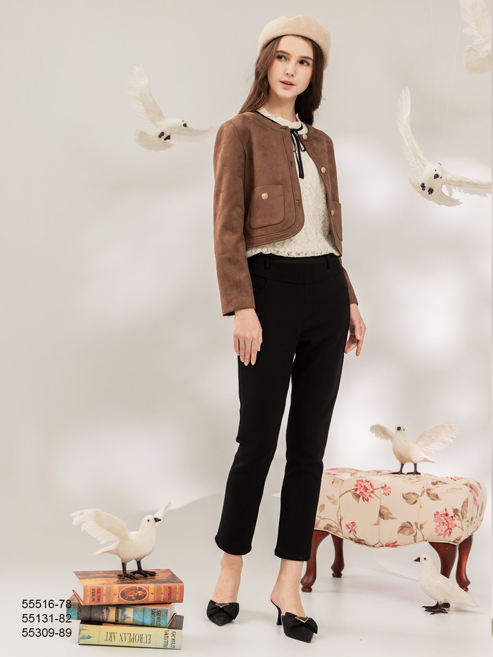 輕柔雪紡面料 浪漫荷葉裝飾 微高領鬆緊設計