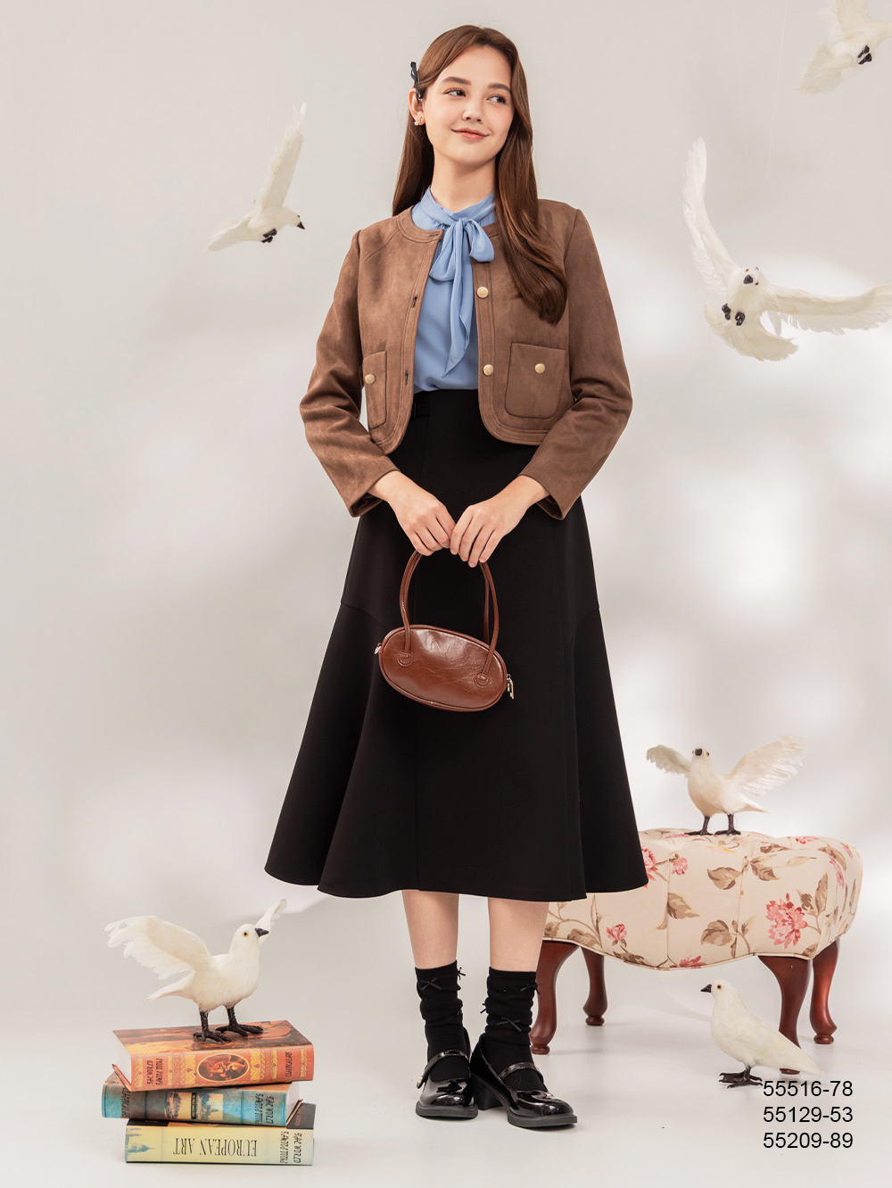 玫瑰黑絲絨質感釦飾 腰部鬆緊帶設計 修身散襬版型