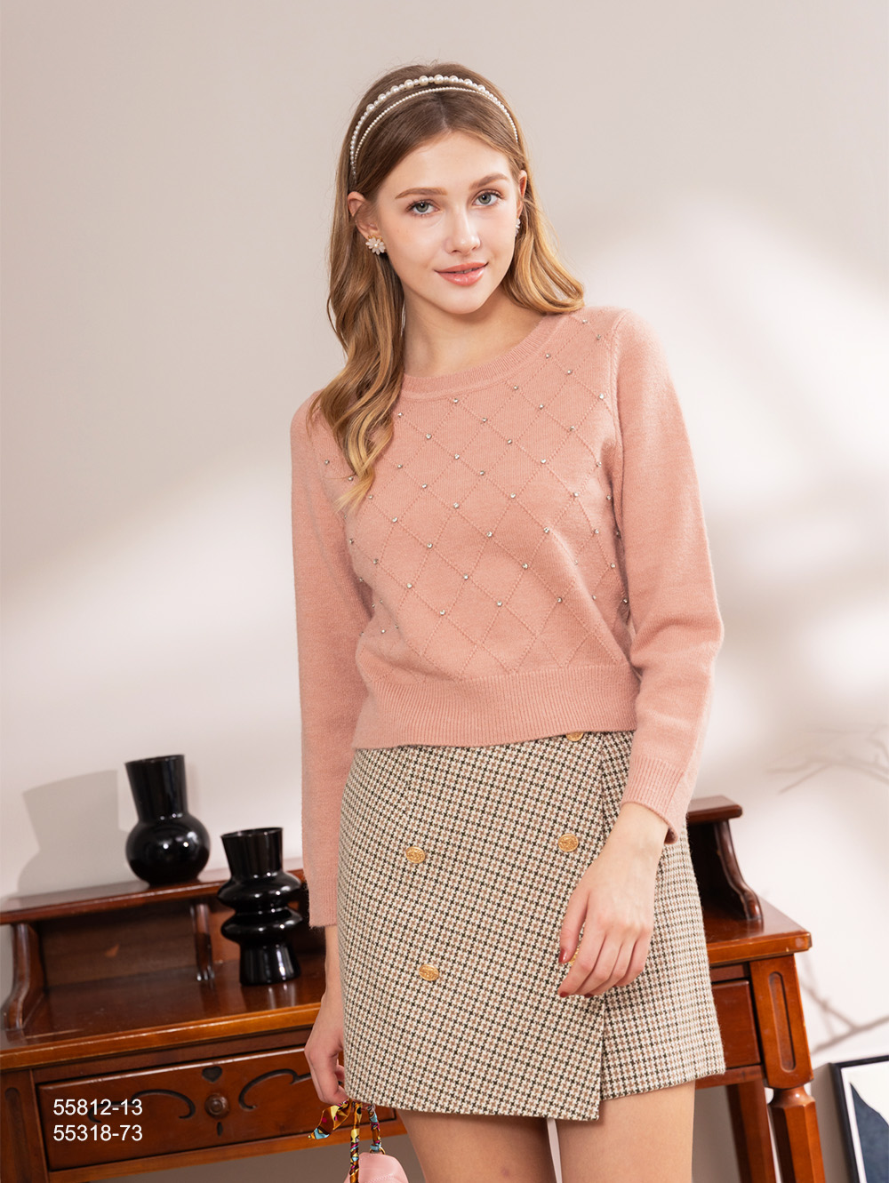 閃亮鑽飾 質感菱格織紋 彈性舒適面料