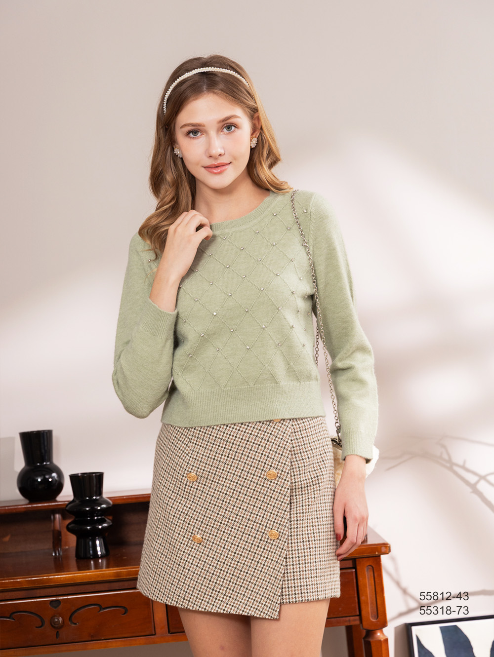 質感花呢織紋面料 羅紋收口設計 兩件式多層次穿搭