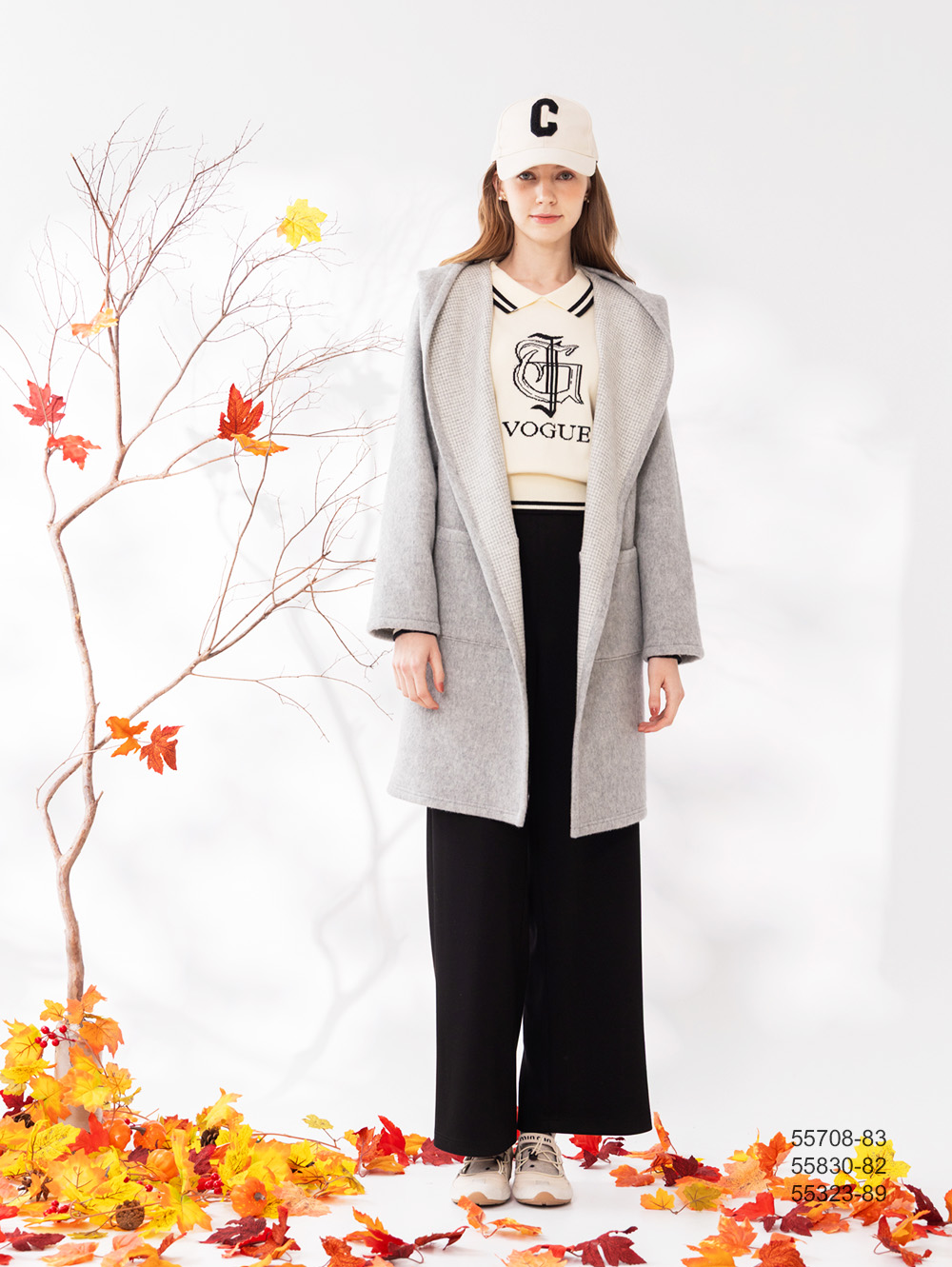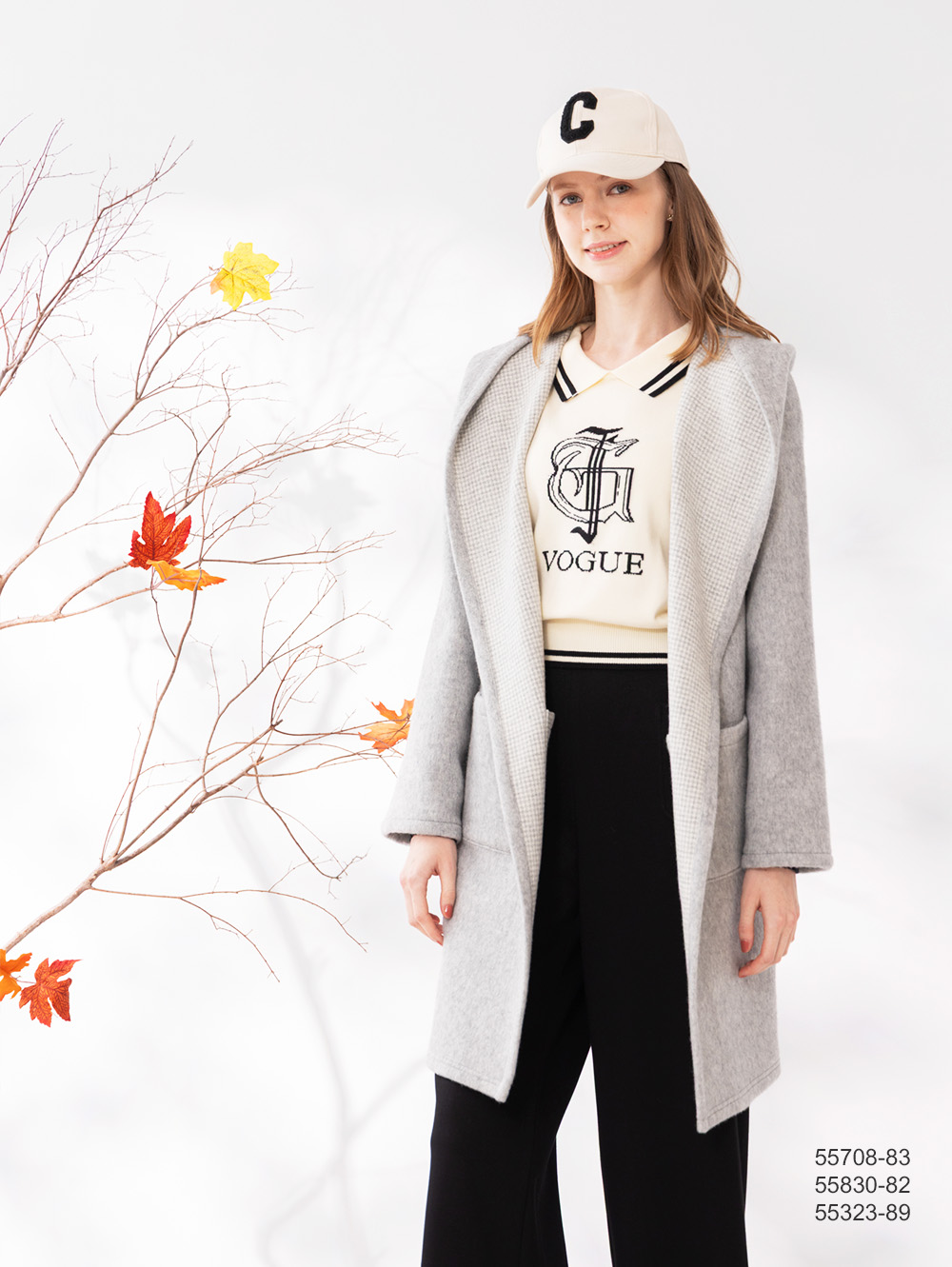 花呢織紋面料 輕奢絲絨釦飾 率性外套版型