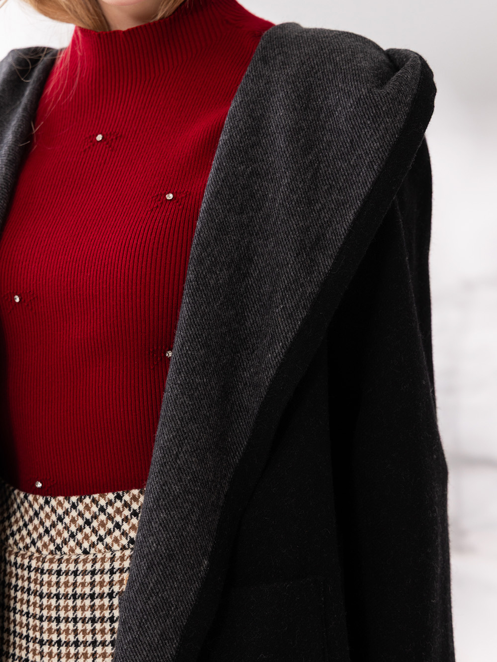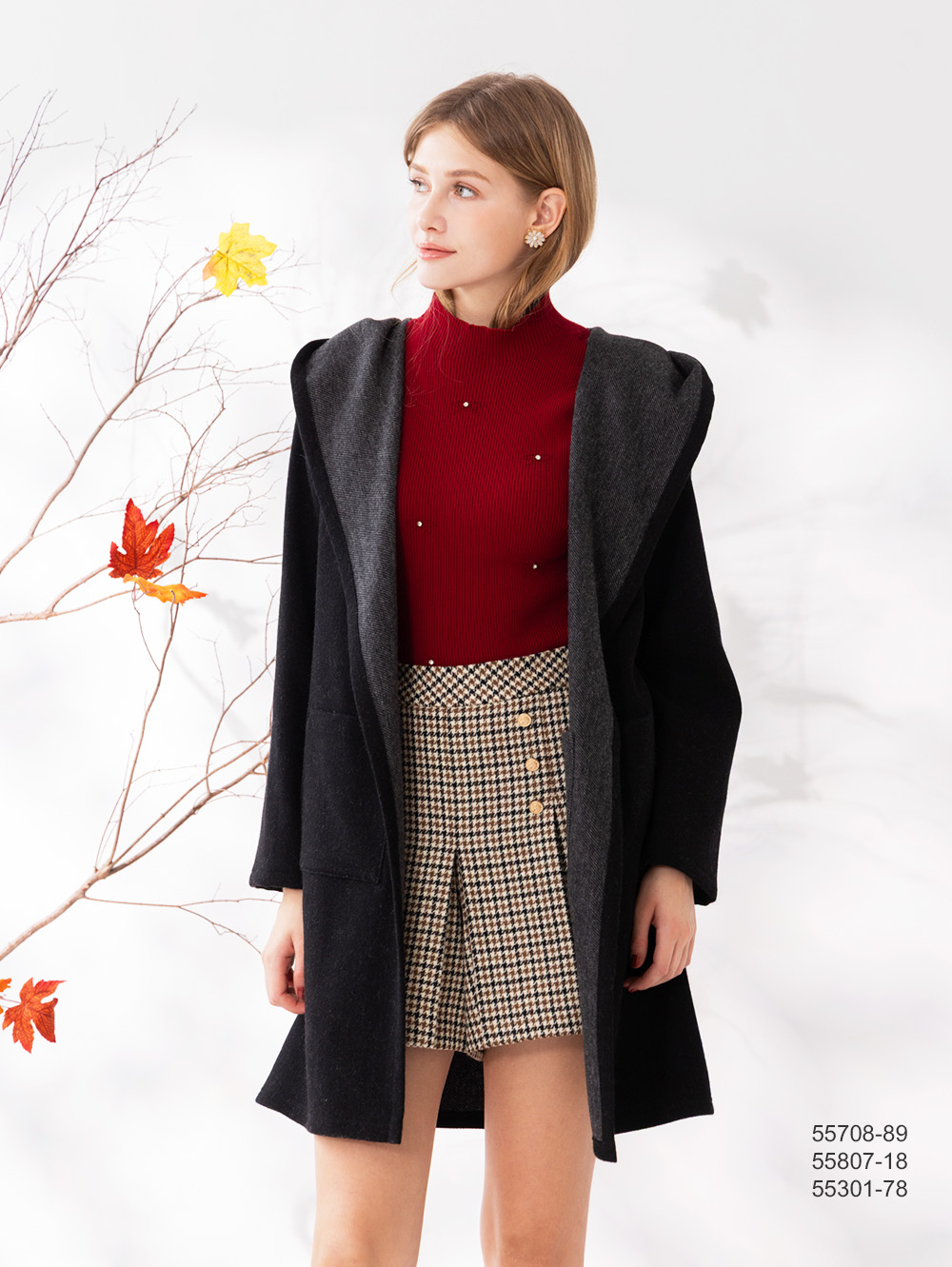 素色織紋粗呢面料 優雅修身版型 附腰帶
