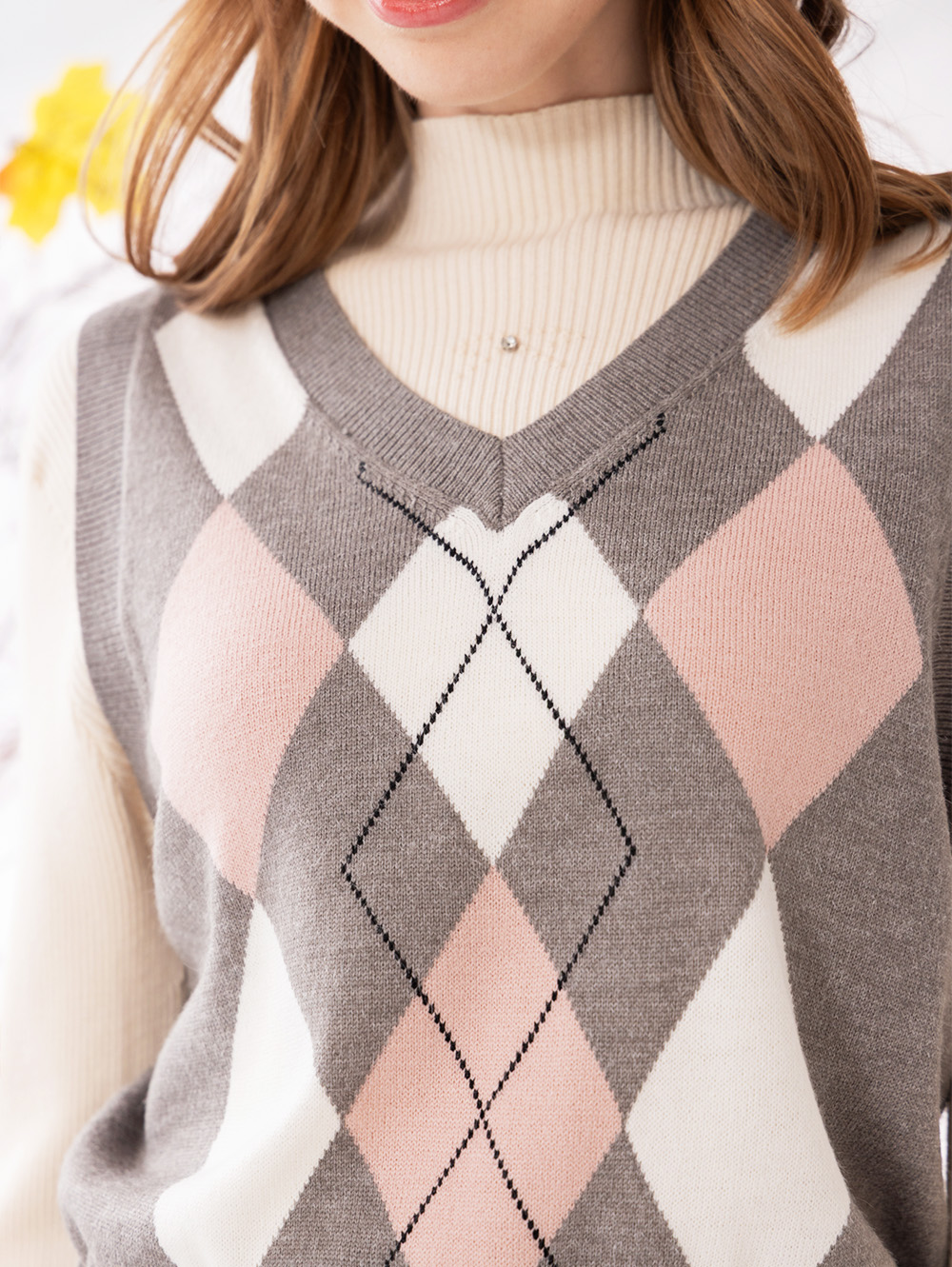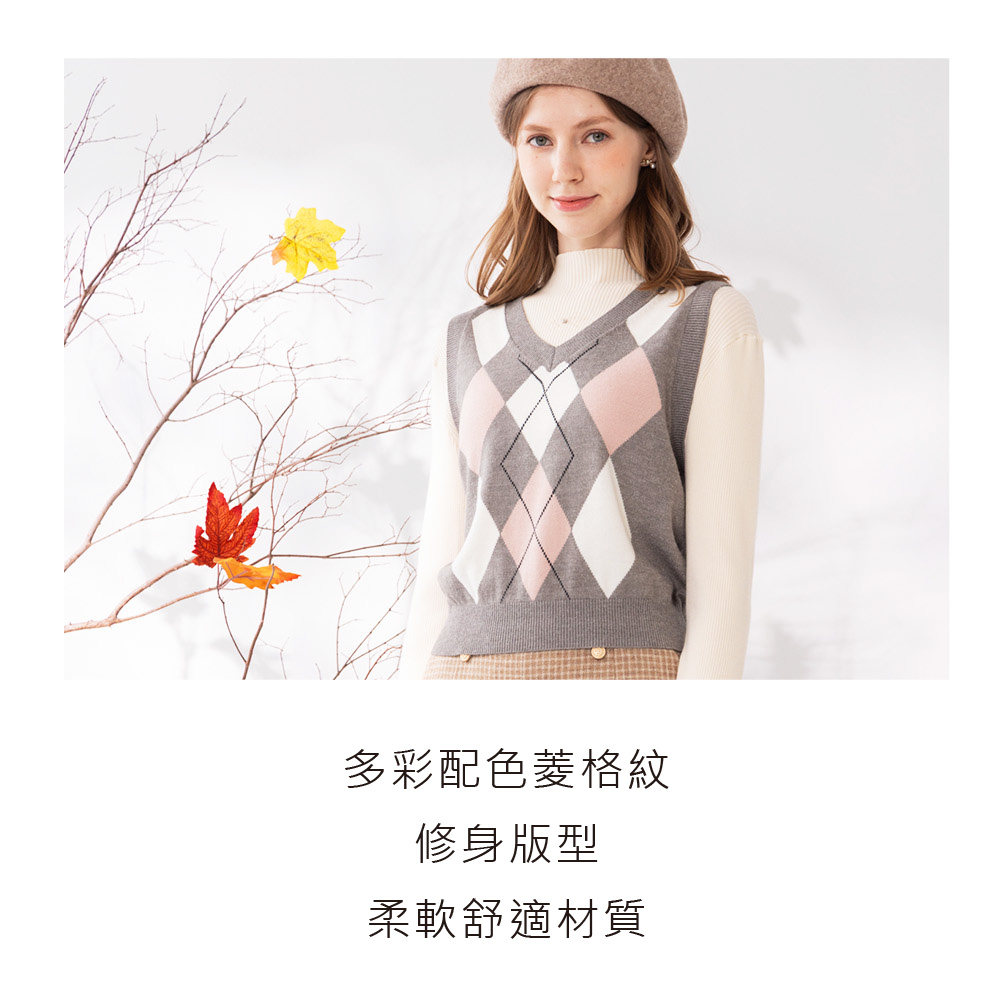 多彩配色菱格紋 修身版型 柔軟舒適材質