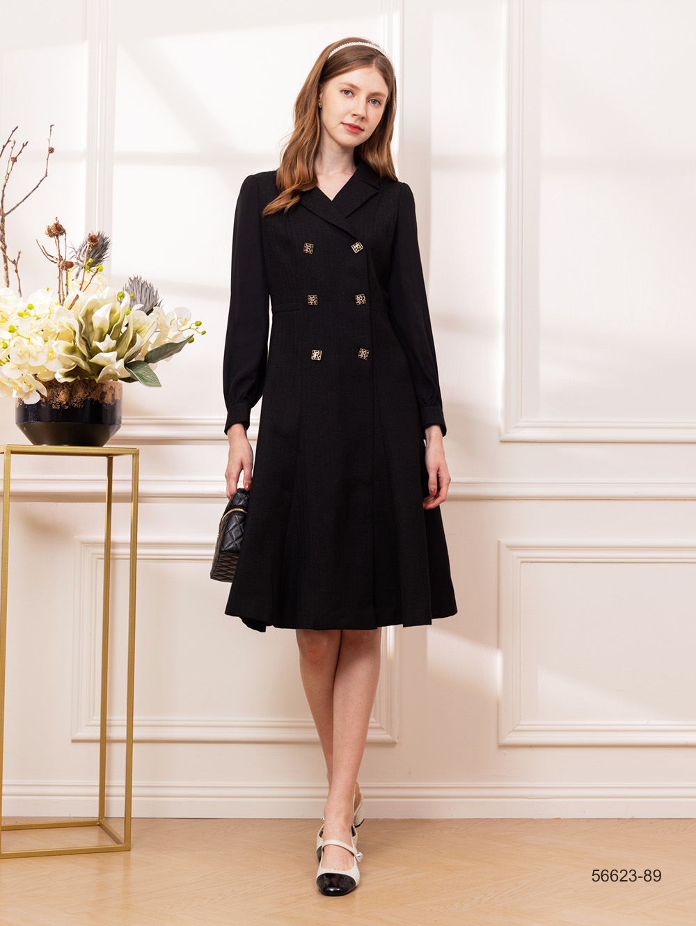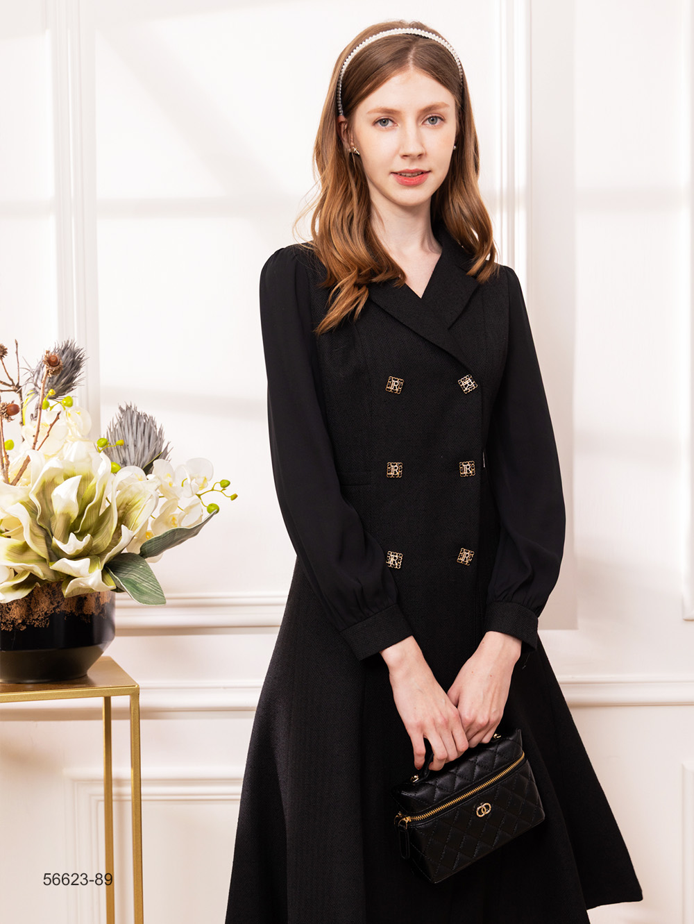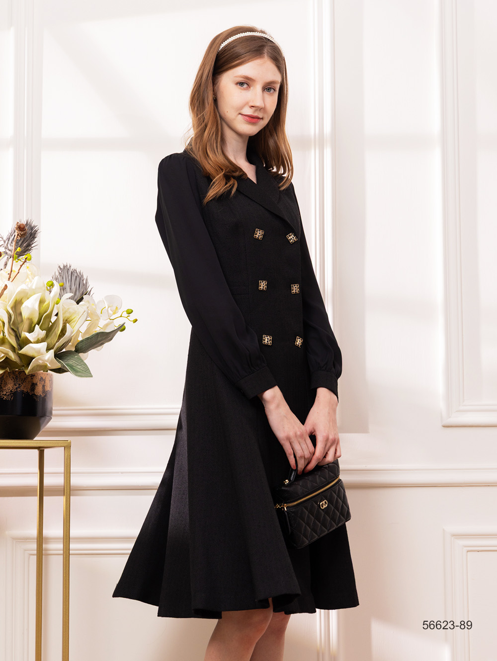 織紋花呢面料 絲絨面料拼接 附蝴蝶結別針 可與56226成套穿搭