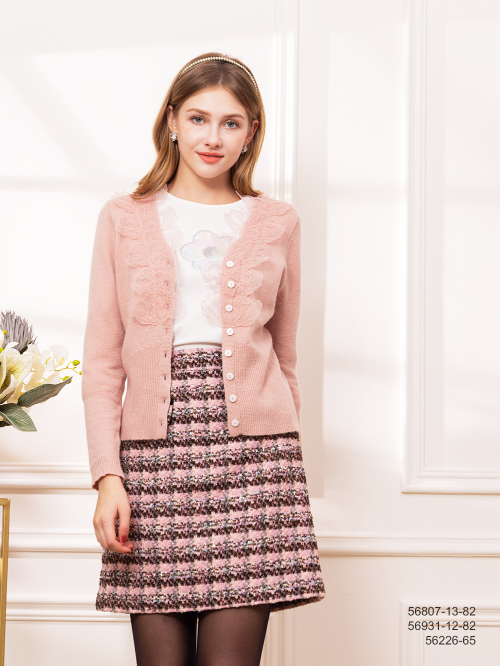 織紋花呢面料 絲絨面料拼接 可與56534成套穿搭