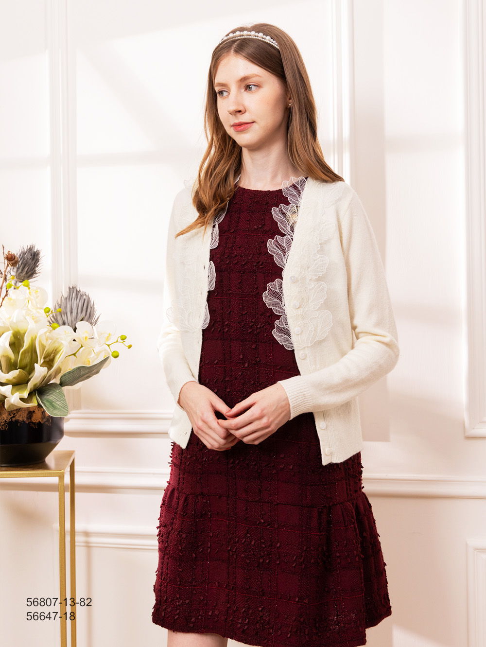 織紋粗呢面料 多層次穿搭背心洋裝版型 附裝飾別針